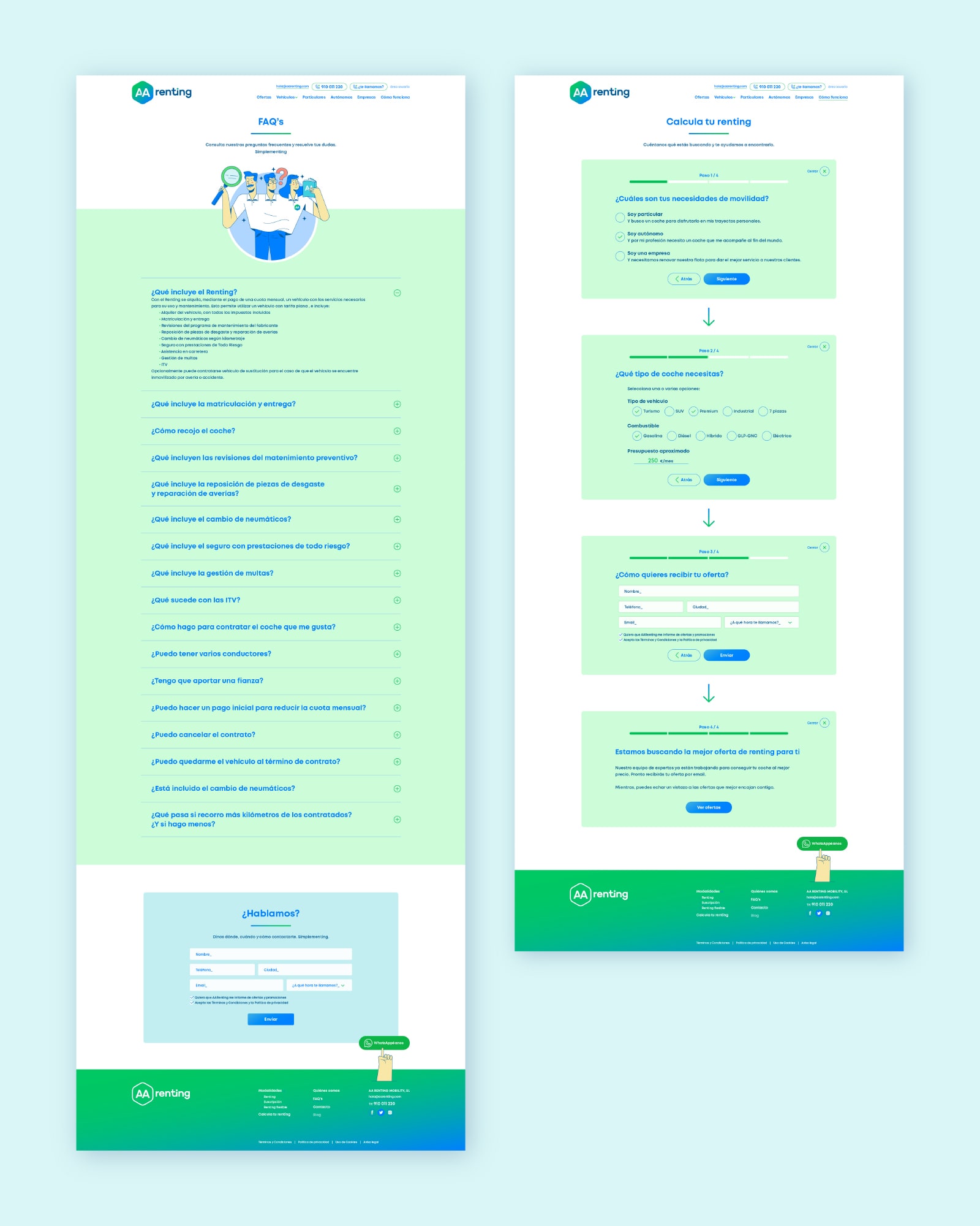 El resultado fue una experiencia de usuario rápida, accesible y fácil de mantener, que además proyectaba de forma fiel la nueva identidad desarrollada para AA Renting.