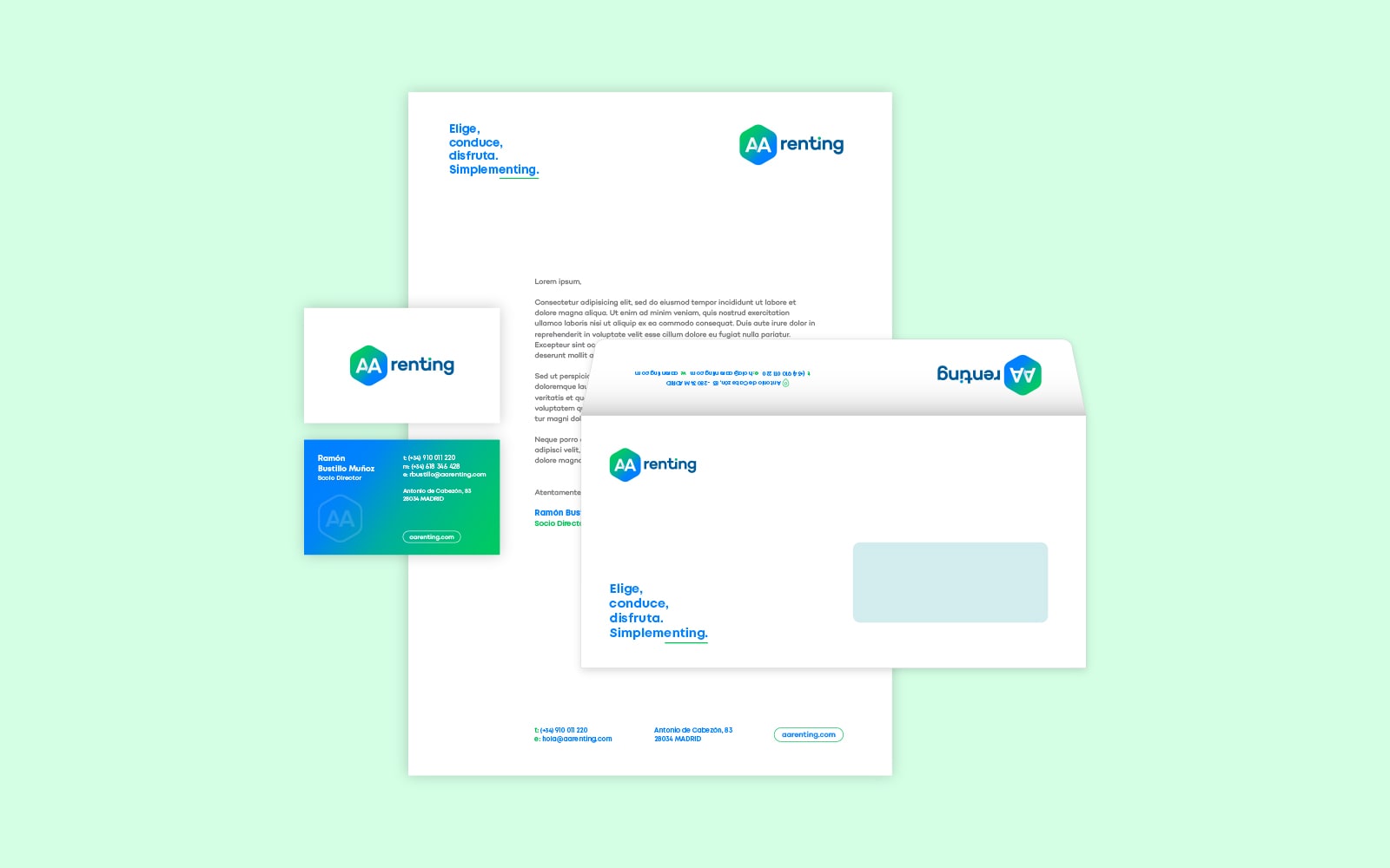 AA Renting necesitaba poner orden y foco en su identidad para crecer con una imagen sólida y coherente. Para ello desarrollamos todo un proyecto de rebranding que ordenaba su identidad y profesionalizaba su presencia en todos los puntos de contacto.