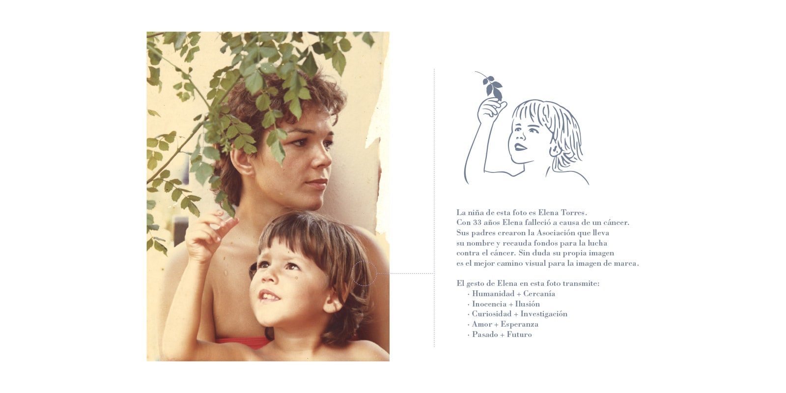 Desde Sr.Qu. tuvimos el grato placer de crear su nuevo logotipo, para cuyo camino gráfico creamos una imagen simbólica de la propia Elena en su etapa infantil combinado con una tipografía muy gestual, destacando así el factor emocional que rodea a la Asociación.