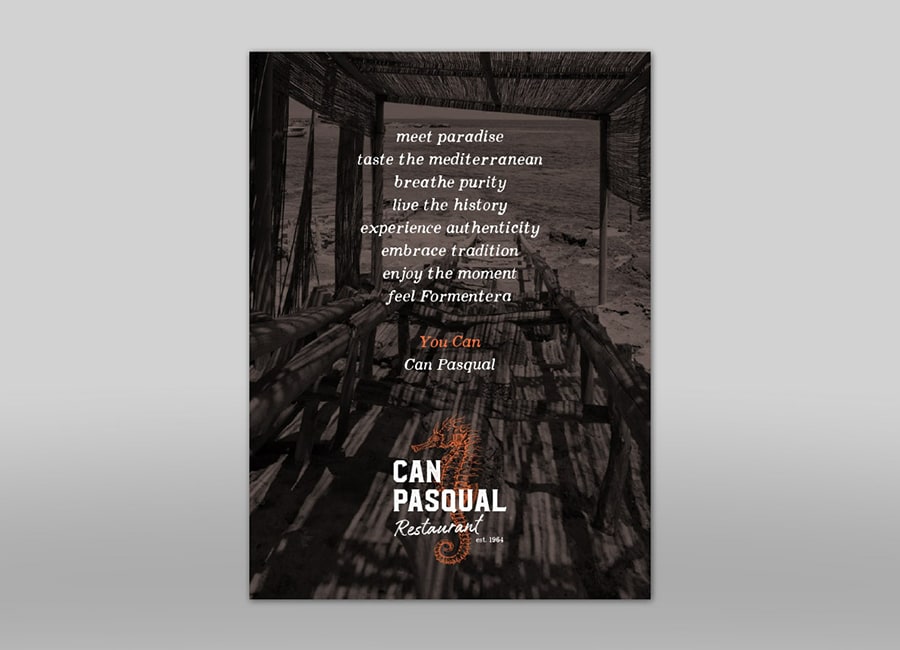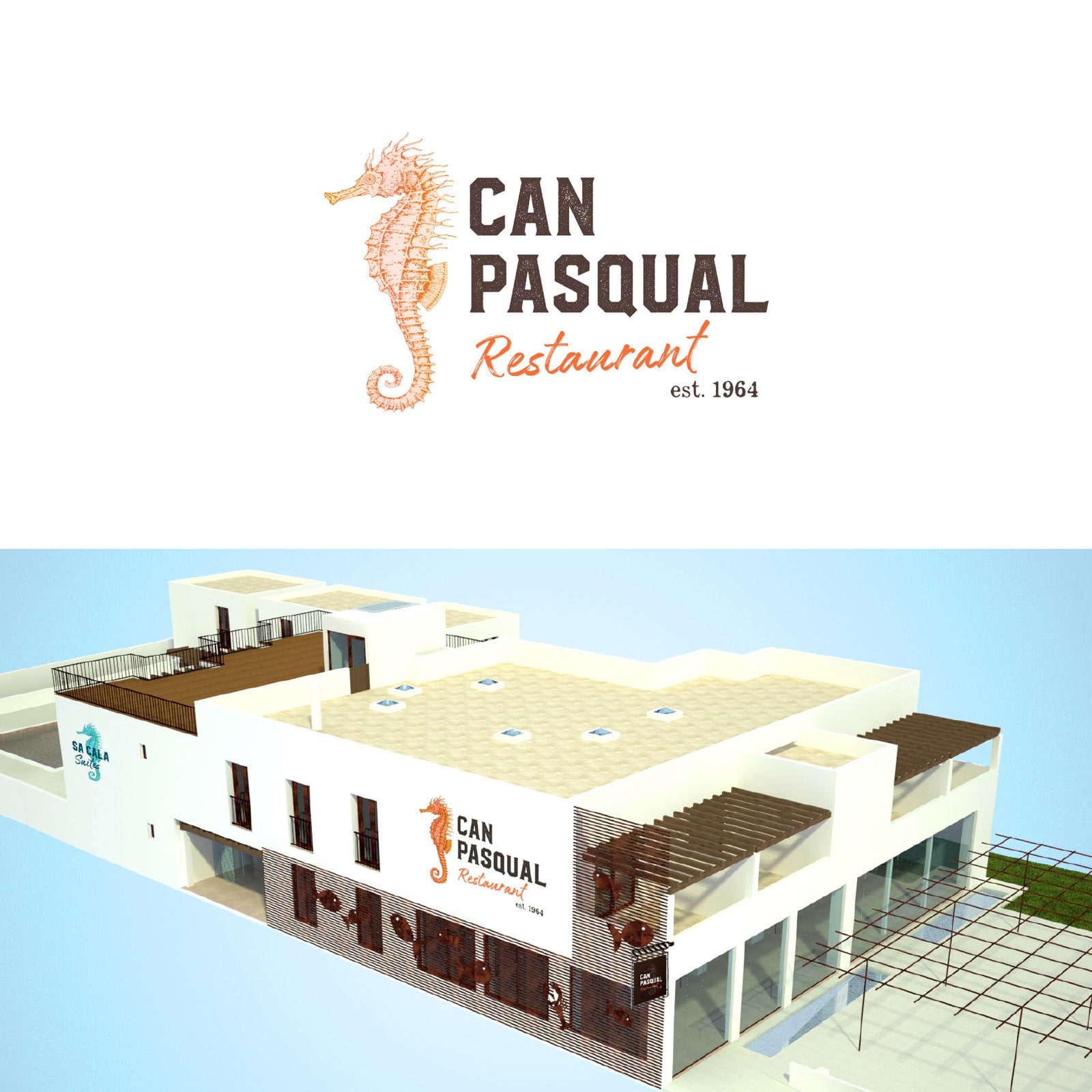 El Restaurante Can Pasqual abrió sus puertas en Formentera en el año 1964. Tras más de medio siglo de actividad tocaba renovación por completo, y junto a la reconstrucción del edificio que albergaba ambos negocios se definieron las nuevas marcas: Can Pasqual Restaurant y Sa Cala Suites Apartaments.