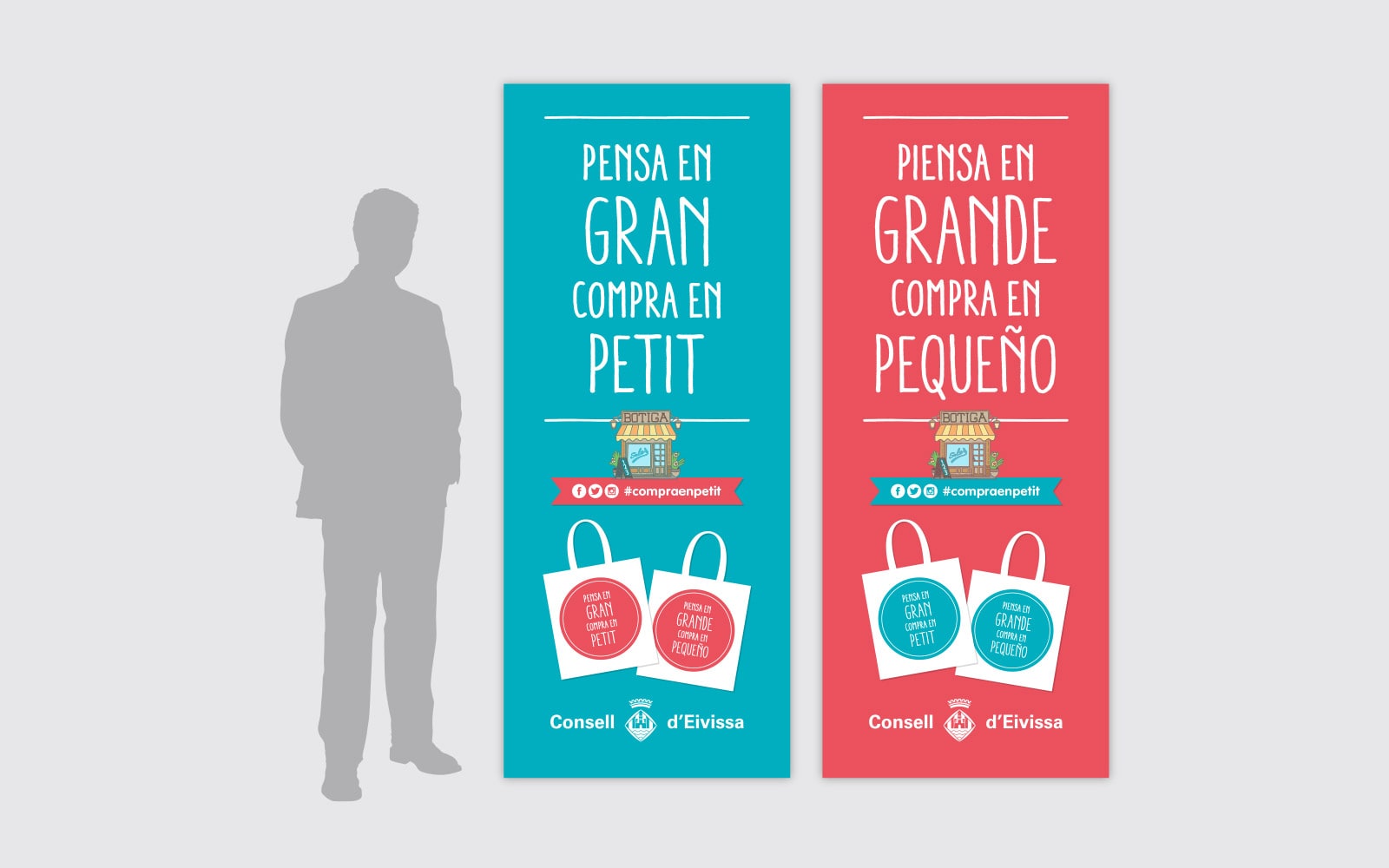La campaña “Compra en petit” fue una campaña a nivel local en la isla de Ibiza, donde se intentaba concienciar de la importancia de los pequeños actos individuales y locales sobre la economía y bienestar global (thinking Glocal).