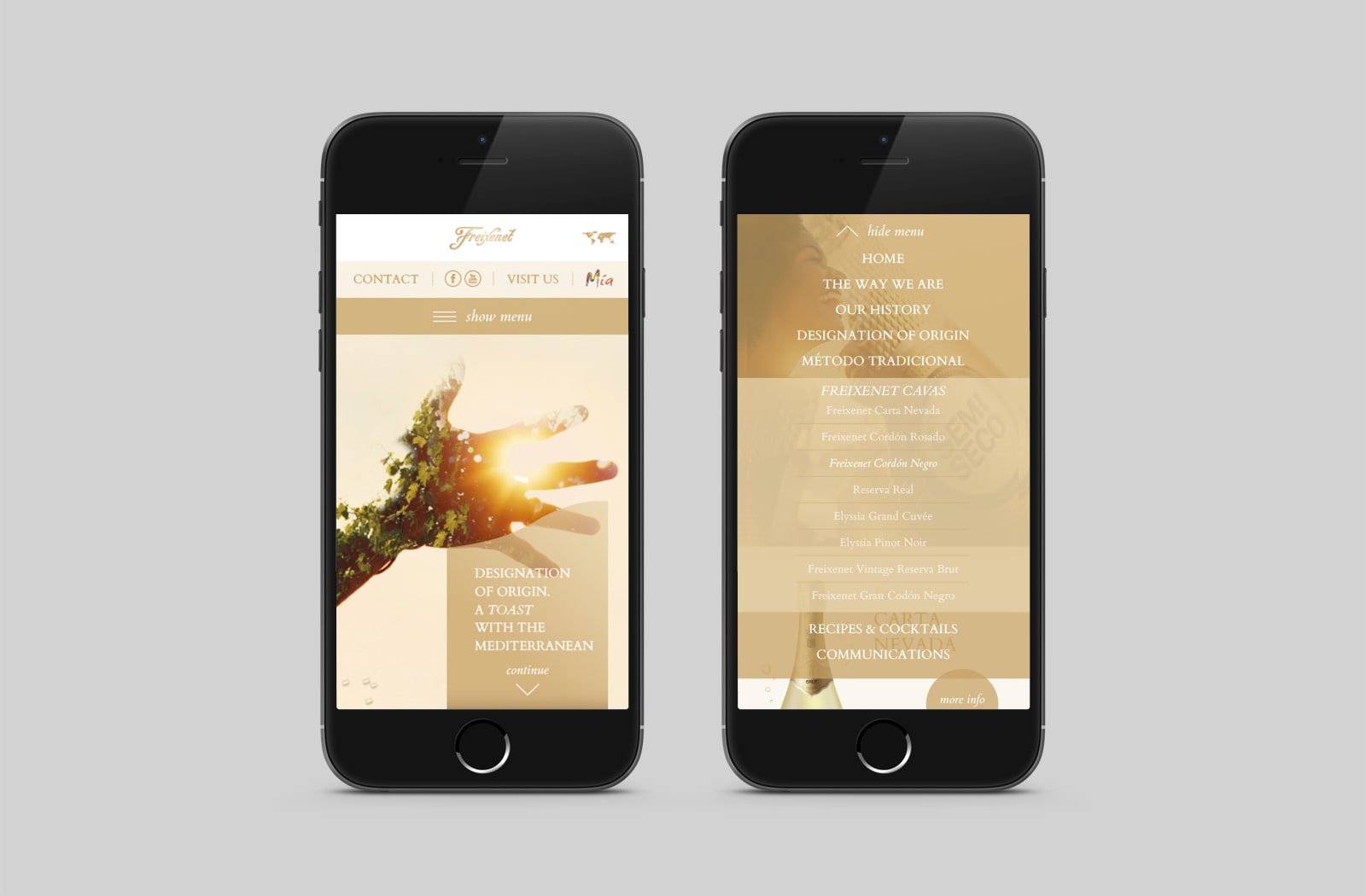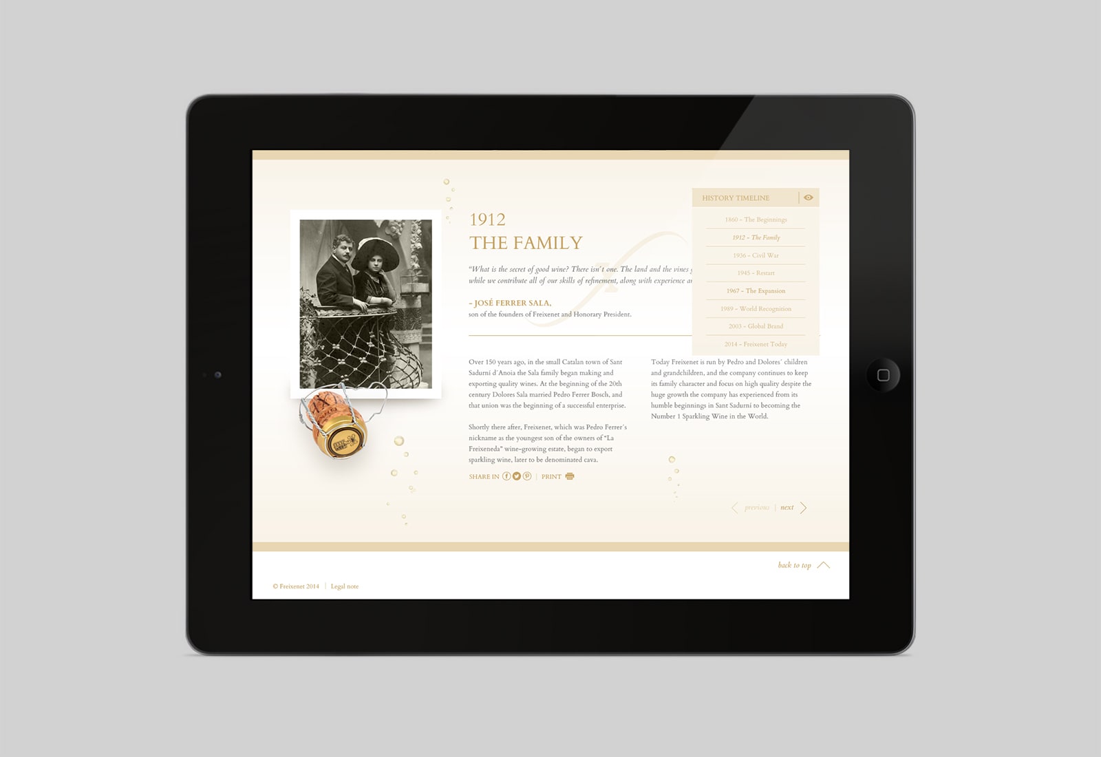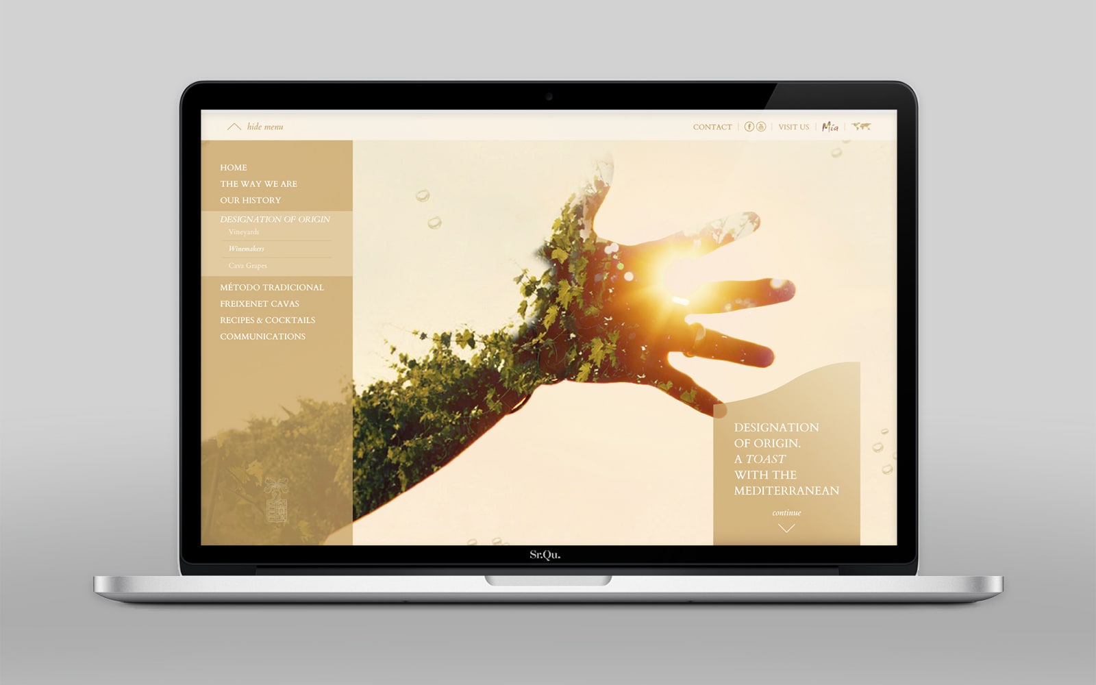 Planteamiento visual de web internacional para la marca global Freixenet, definiendo su arquitectura de información y usablidad junto al desarrollo gráfico de las distintas  secciones web de marca muy visual y con un enfoque altamente corporativo.
