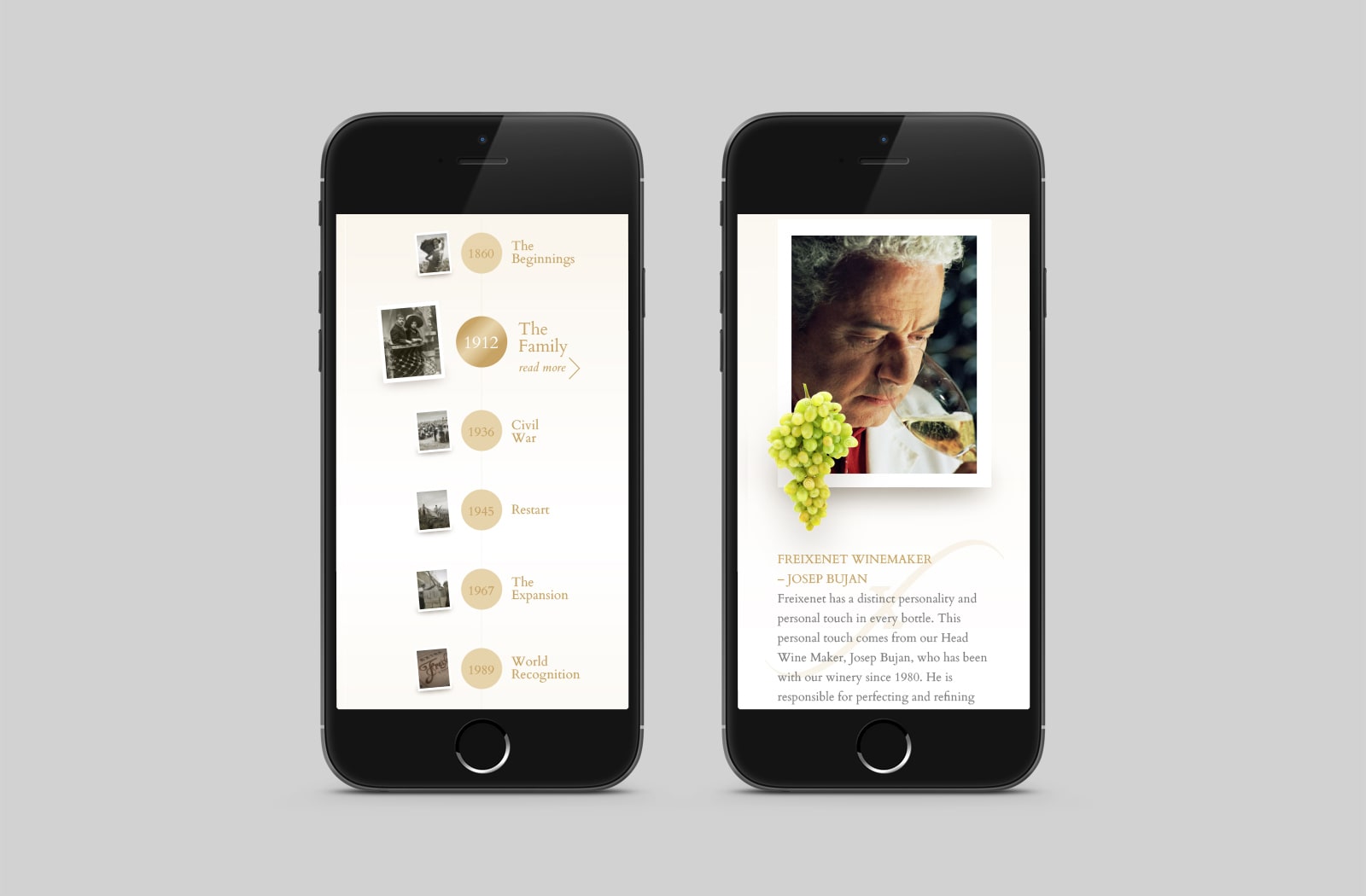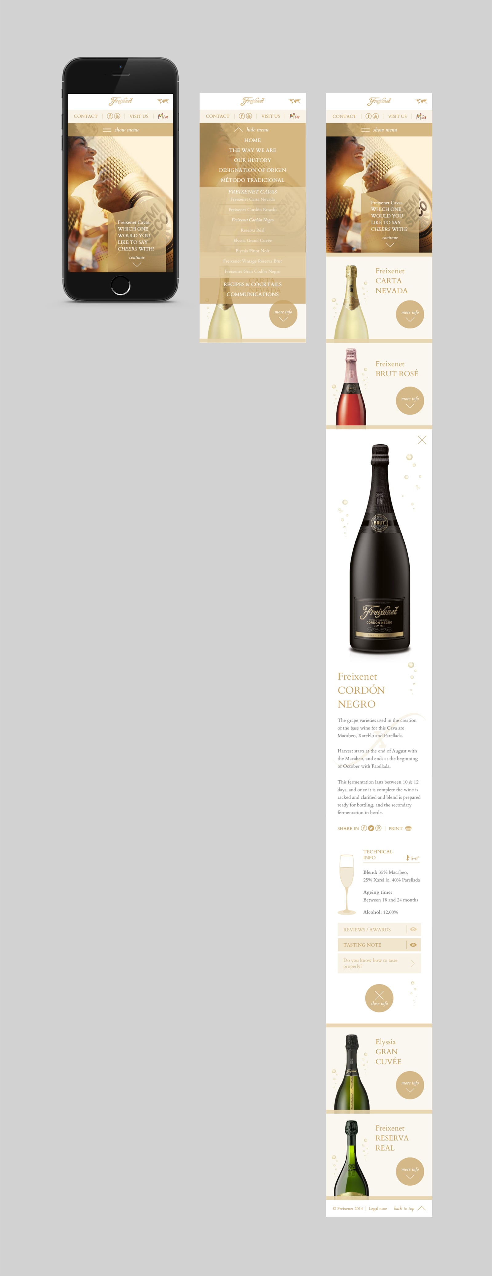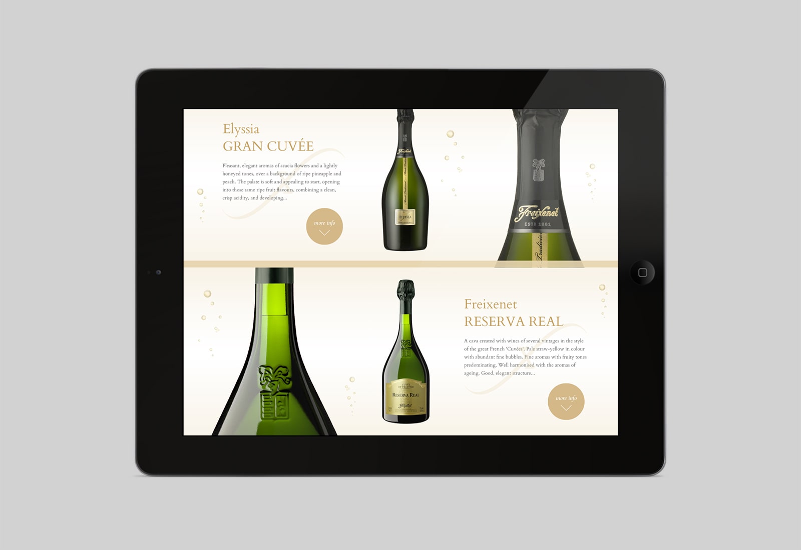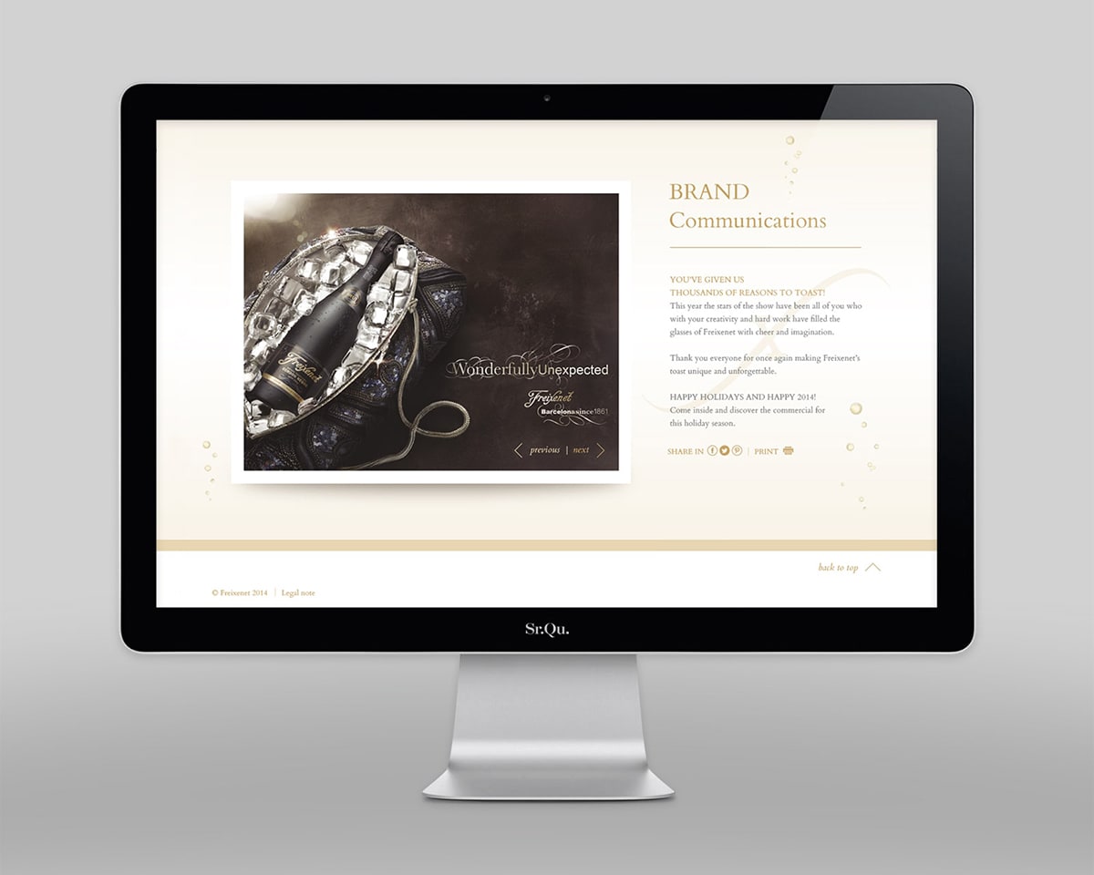 Planteamiento visual de web internacional para la marca global Freixenet, definiendo su arquitectura de información y usablidad junto al desarrollo gráfico de las distintas  secciones web de marca muy visual y con un enfoque altamente corporativo.