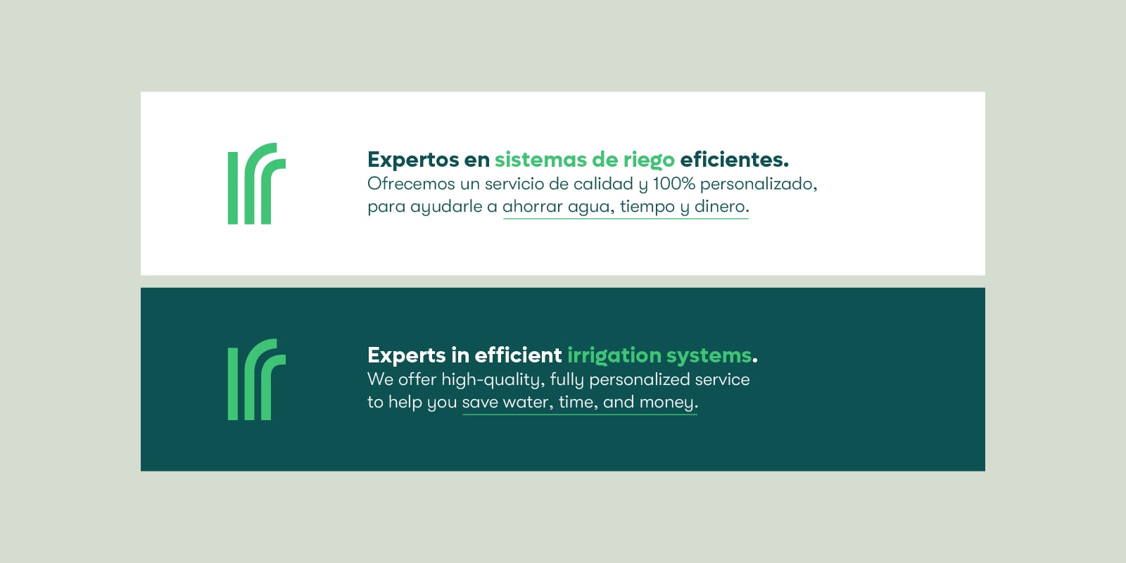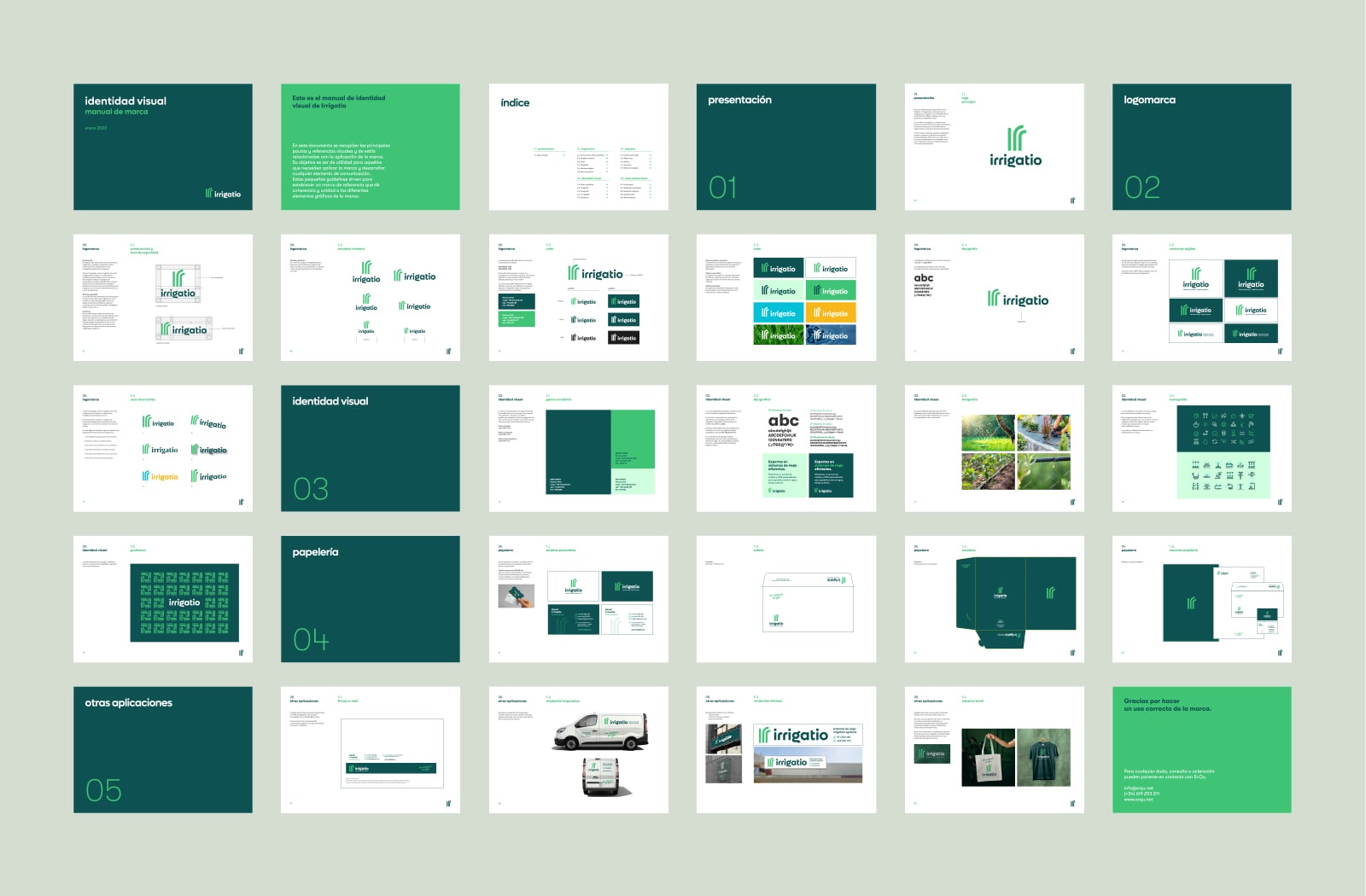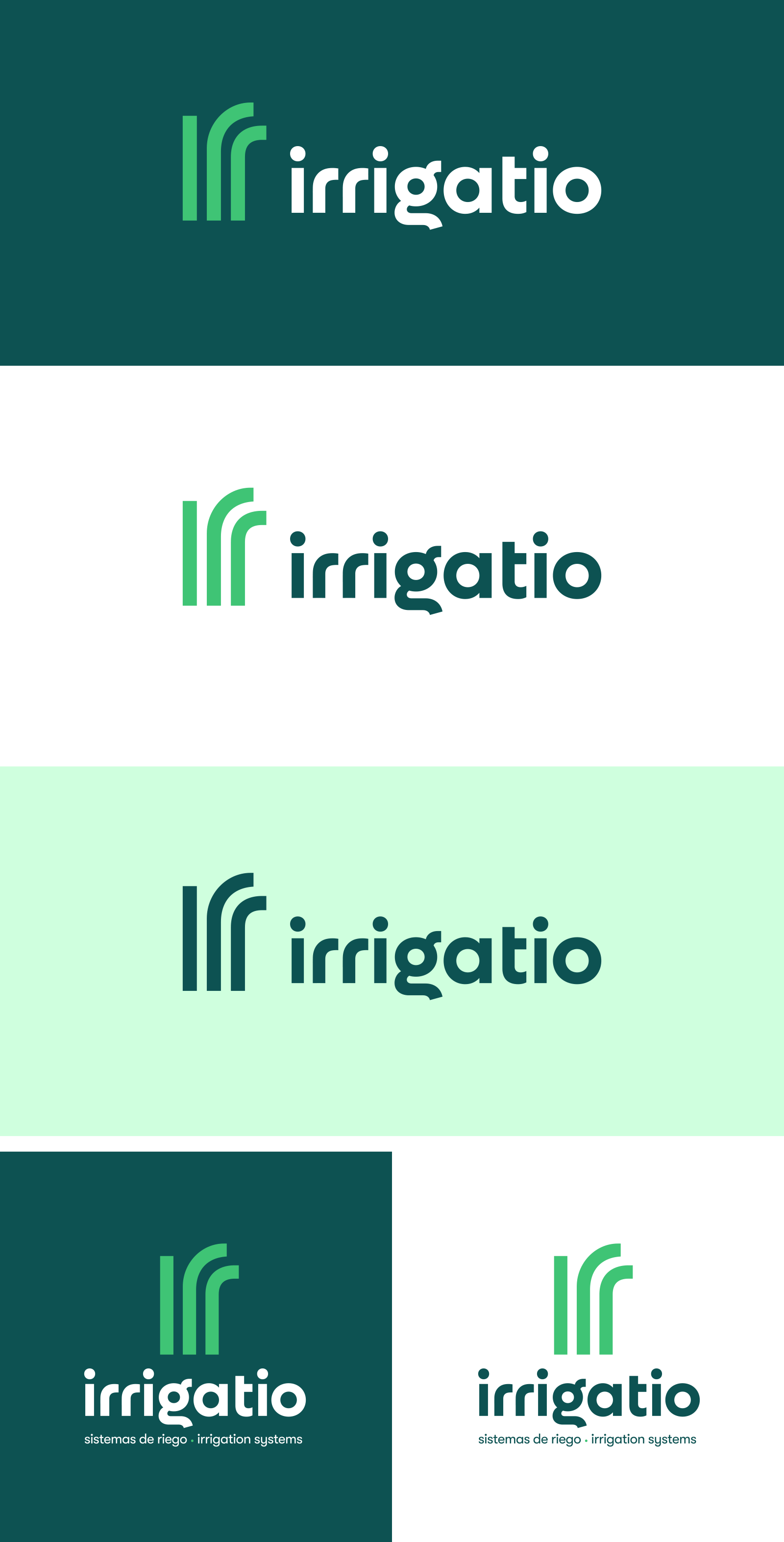 En cuanto nos reunimos con Irrigatio lo vimos claro, el nuevo símbolo de marca ya estaba desde el principio ahí, solo había que darle vida. A partir de un trabajo tipográfico previo, conseguimos construir un nuevo símbolo que nacía de la raíz del propio nombre (irr).