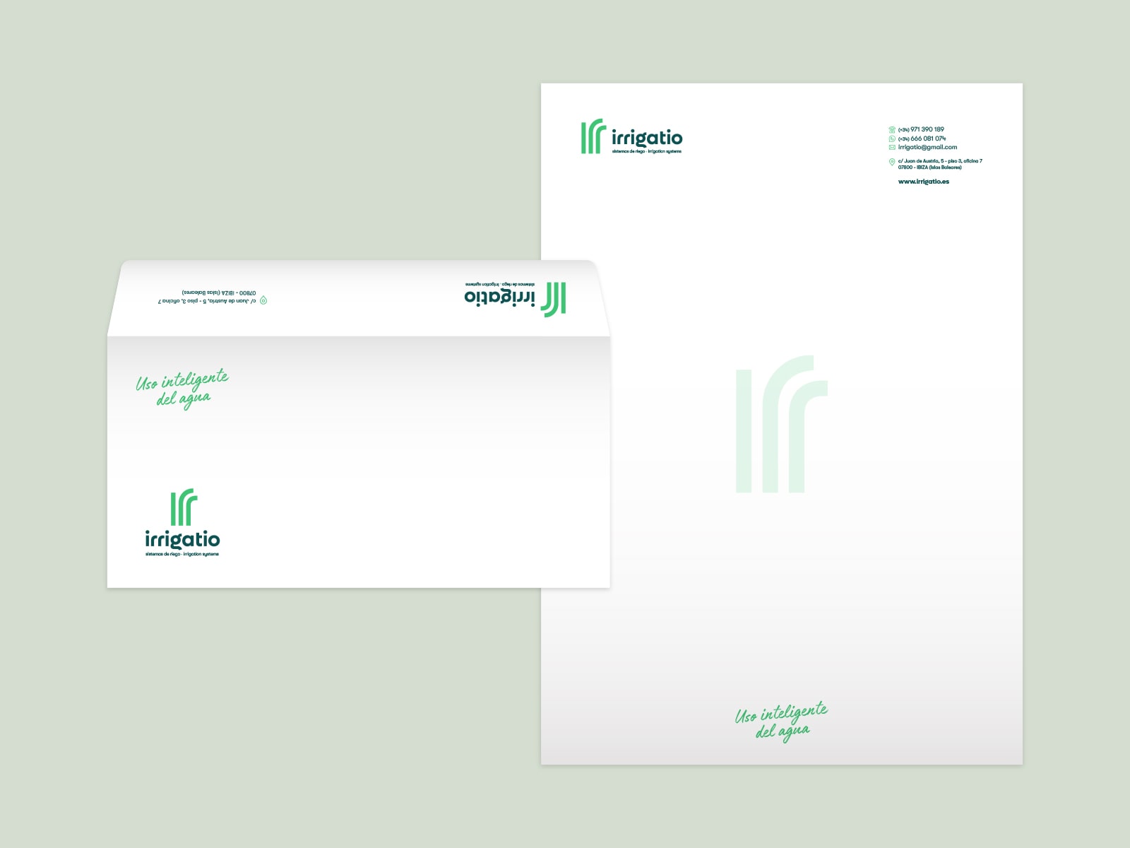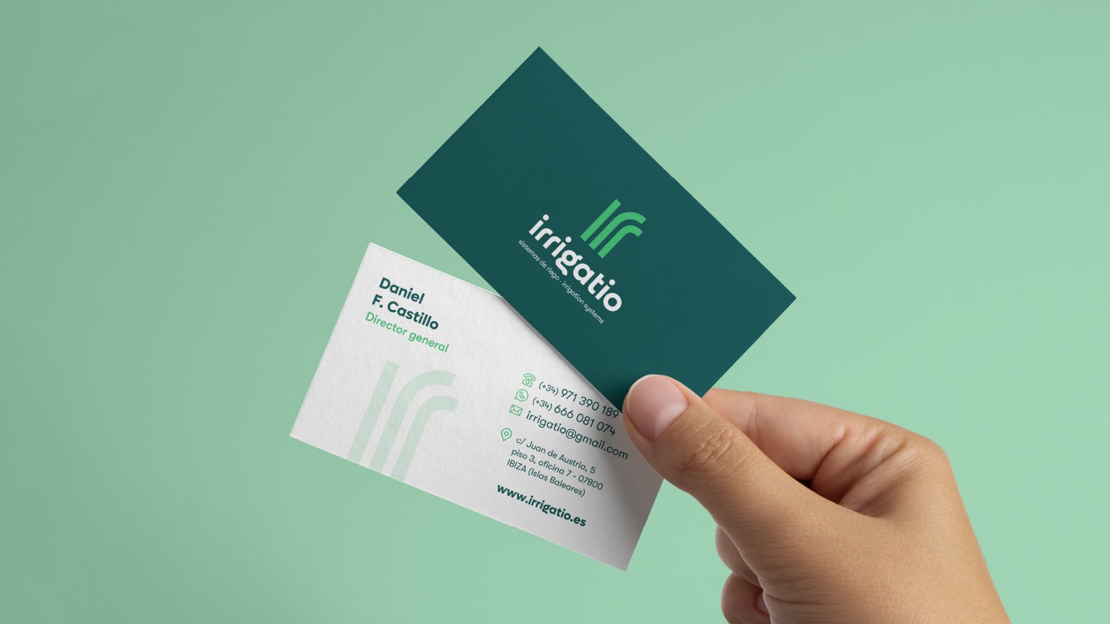Irrigatio es la única empresa especializada en sistemas de riego residencial y agrícola en Ibiza, con más de 20 años de experiencia en su sector. Lo cual se merecía una imagen de marca profresional, moderna y representativa de su actividad.