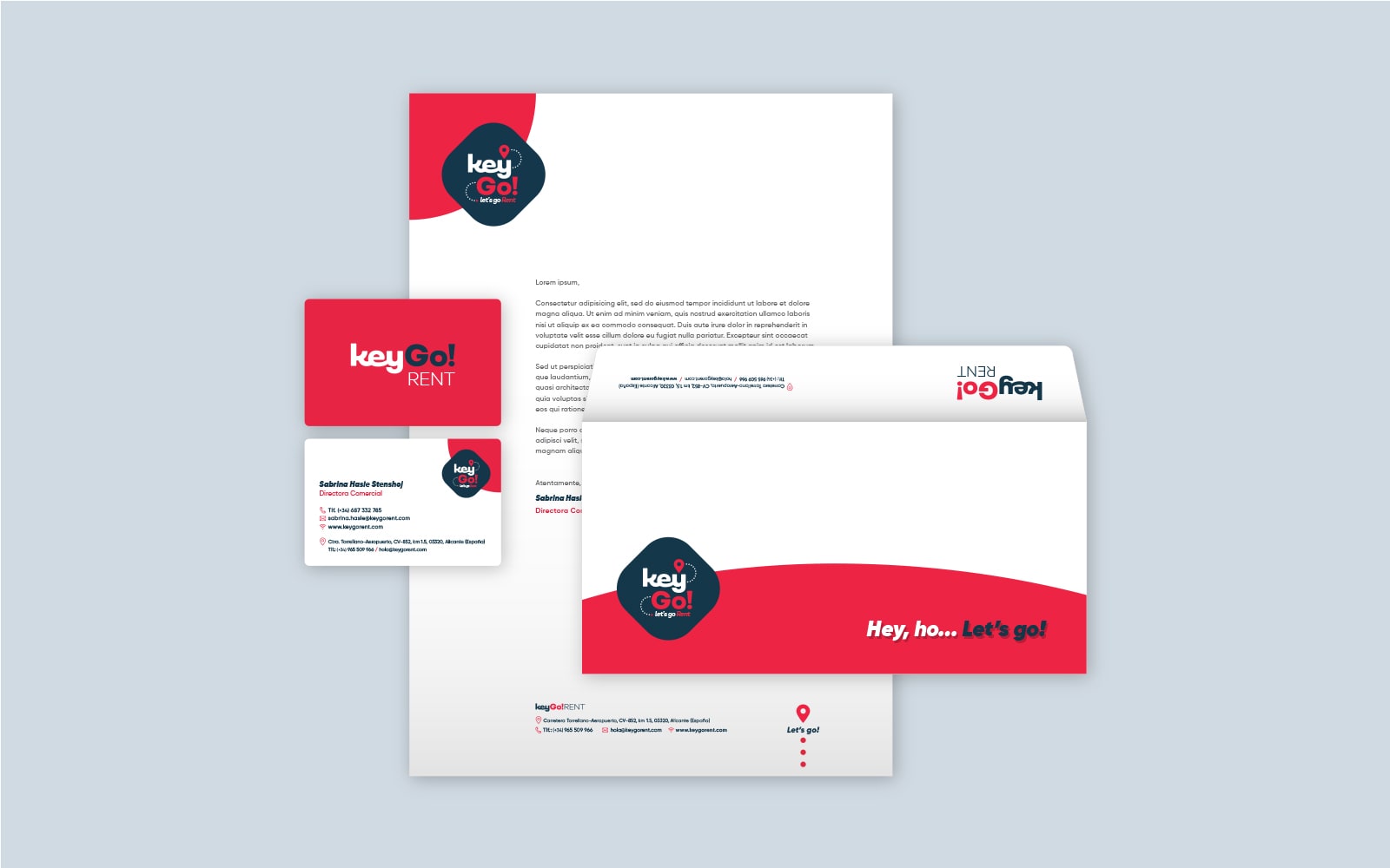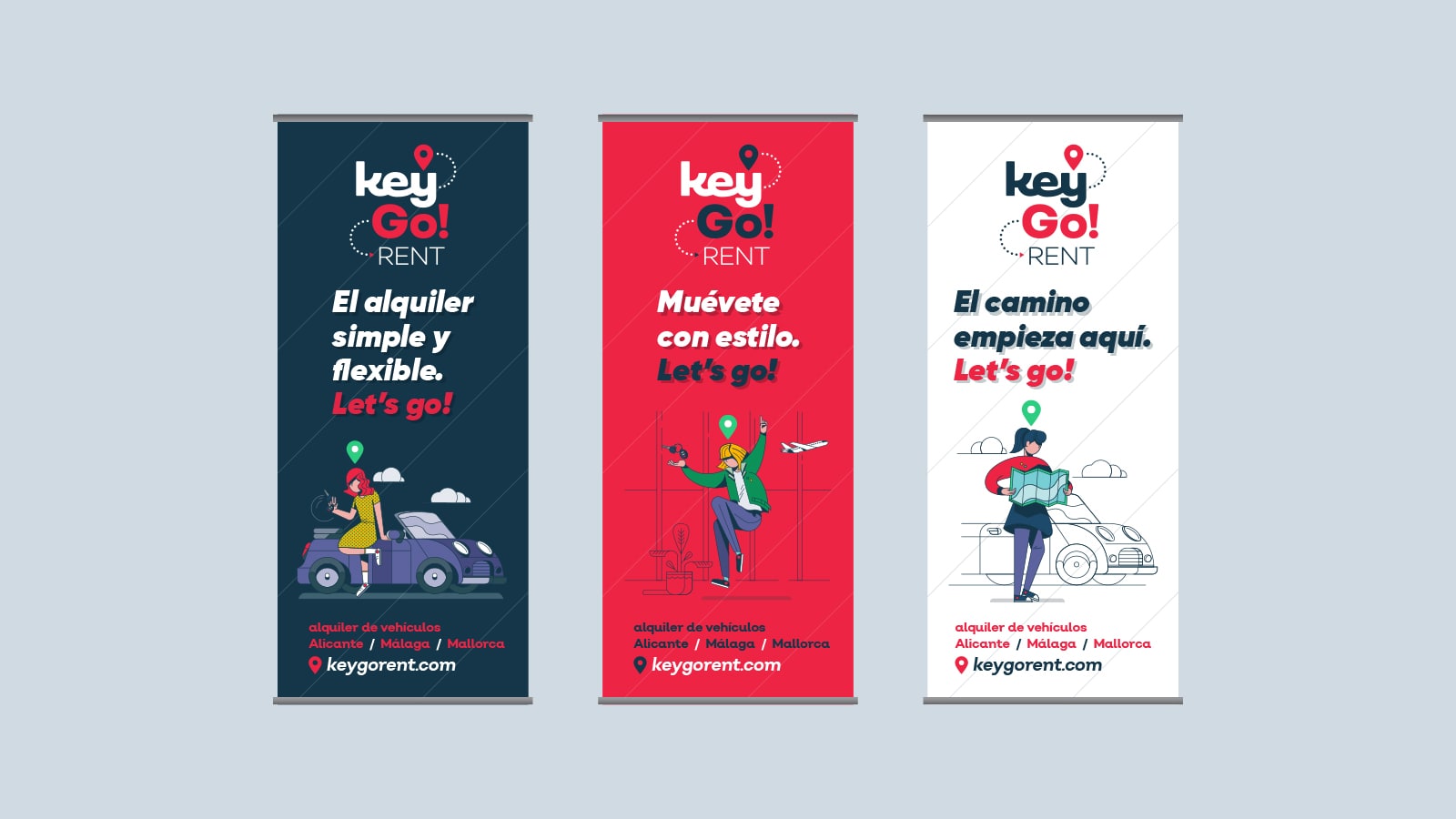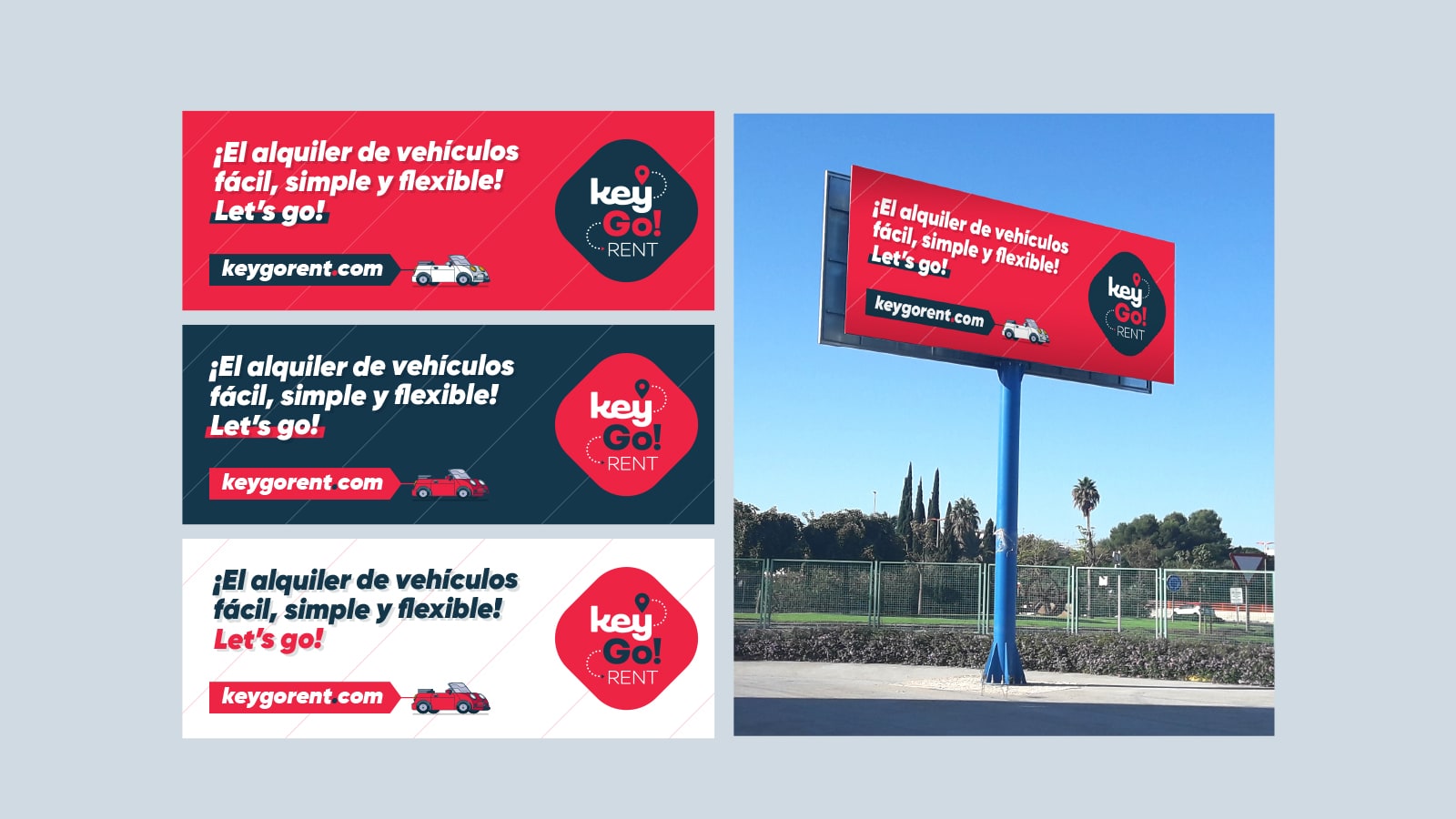 La base gráfica KeyGo estaba presente, manteniendo rasgos corporativos comunes al resto de submarcas, pero con un tono de comunicación diferente que le permitía tener personalidad propia dentro de un sector de alquiler de vehículos algo saturado.