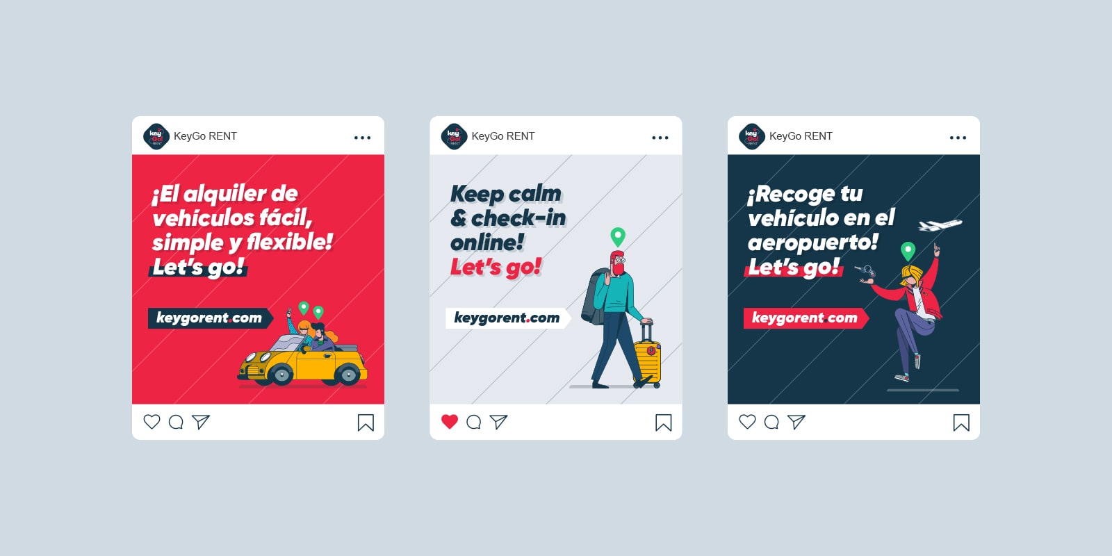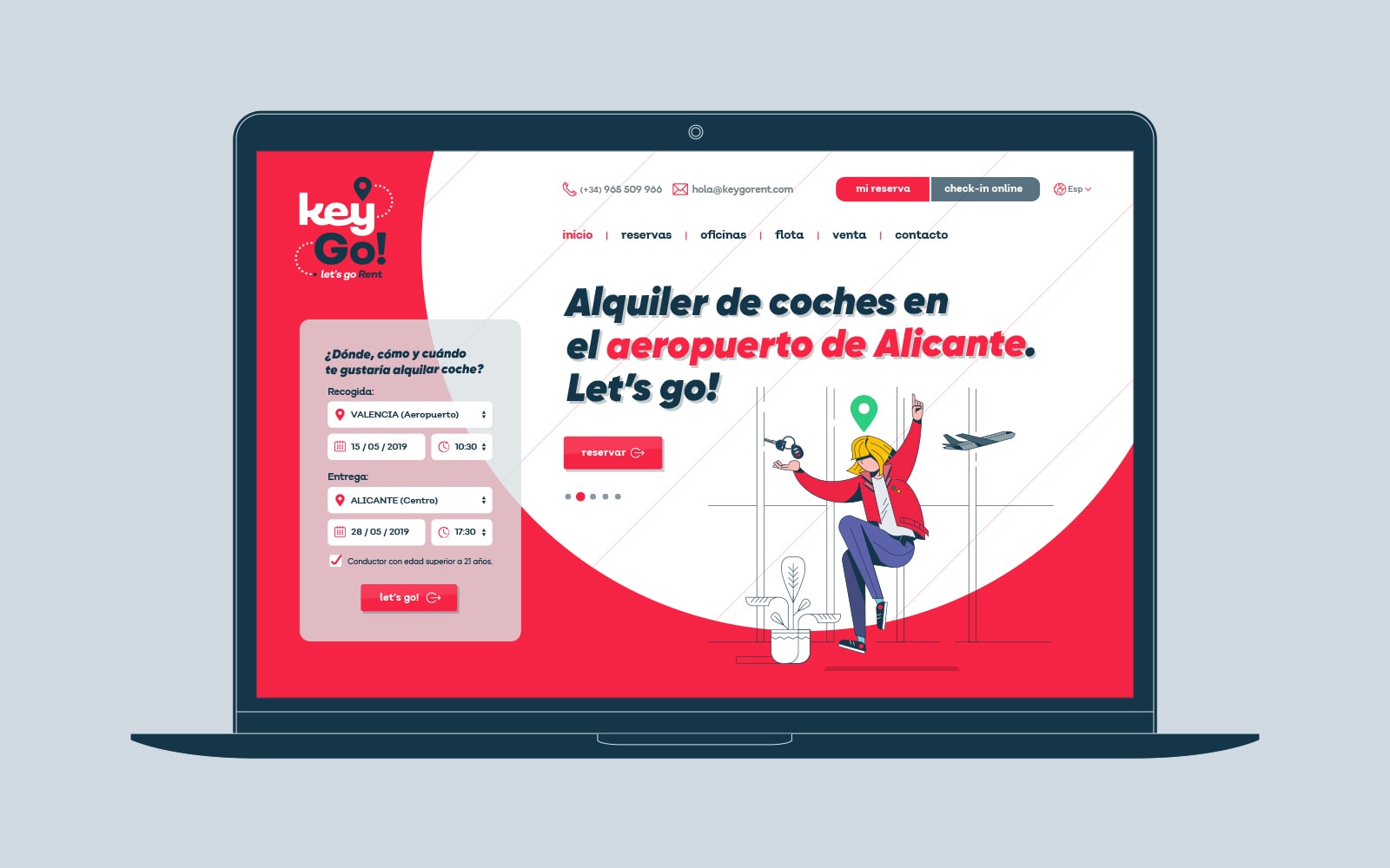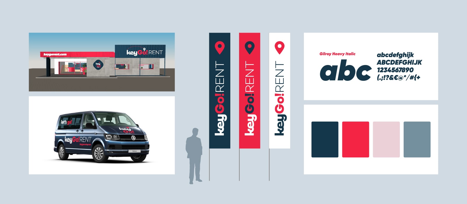 La base gráfica KeyGo estaba presente, manteniendo rasgos corporativos comunes al resto de submarcas, pero con un tono de comunicación diferente que le permitía tener personalidad propia dentro de un sector de alquiler de vehículos algo saturado.