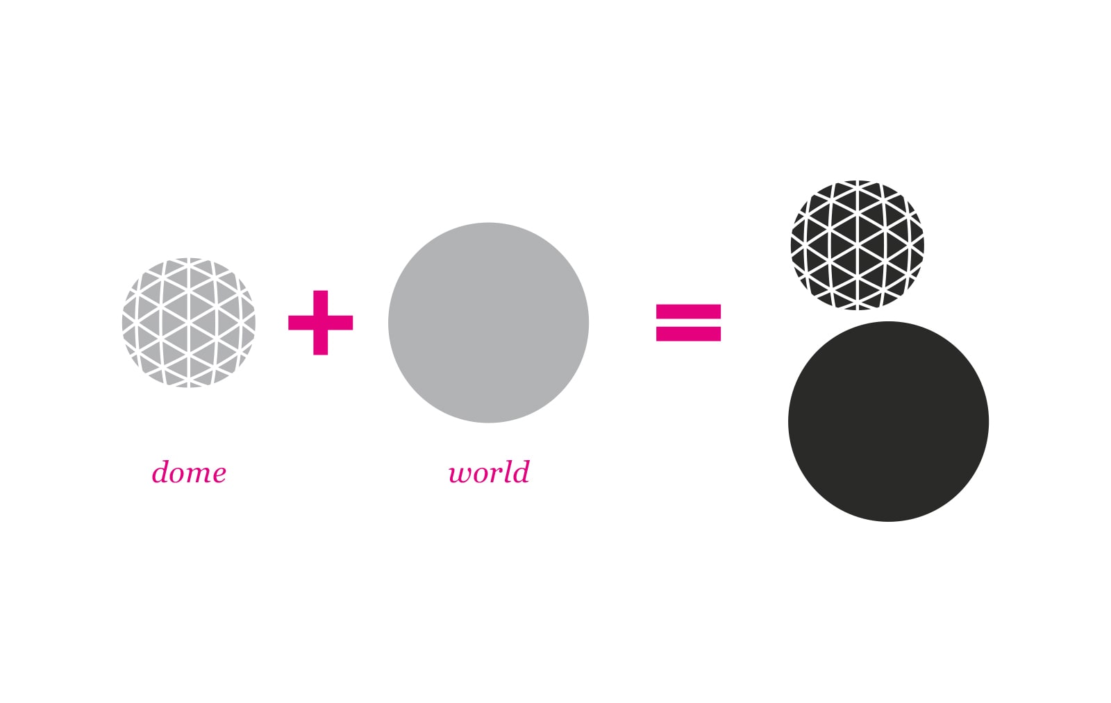 La principal novedad del nuevo logotipo iba a estar entonces en el símbolo. Éste nacería a partir de un elemento característico y único de la discoteca, la cúpula.