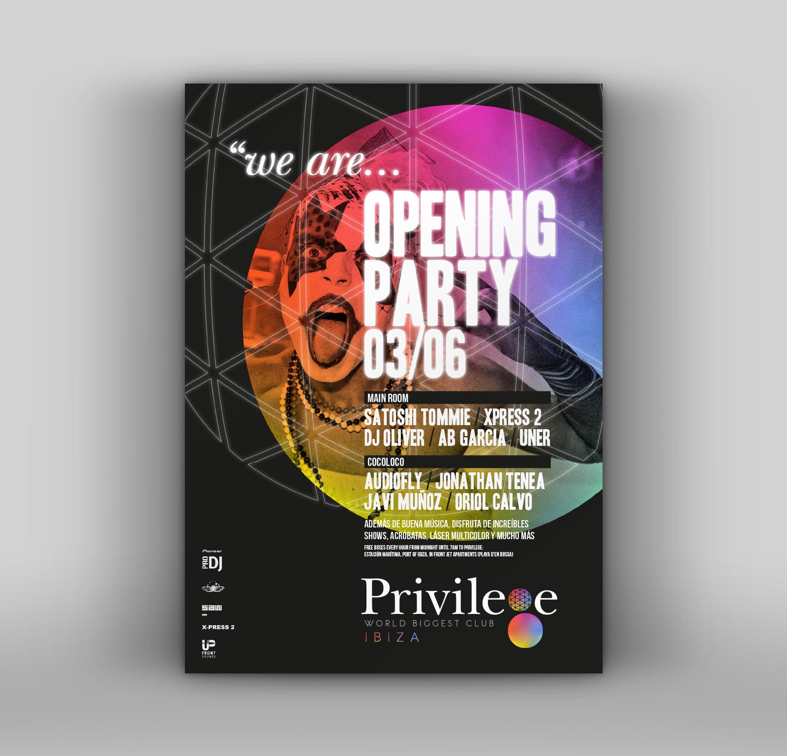 Propuesta de renovación de la identidad visual para la popular discoteca ibicenca Privilege. En ella se mantenía el estilo tipográfico del logotipo antiguo, pero con un ligero restyling que la hacía más uniforme y le daba un toque más moderno.