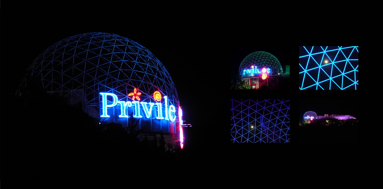 La cúpula como icono característico de la discoteca, los colores vivos, imágenes impactantes y una disposición de los elementos estructurada pero intercambiable, proporcionaban a la discoteca una nueva identidad mucho más potente y vinculada a su esencia como club de referencia.