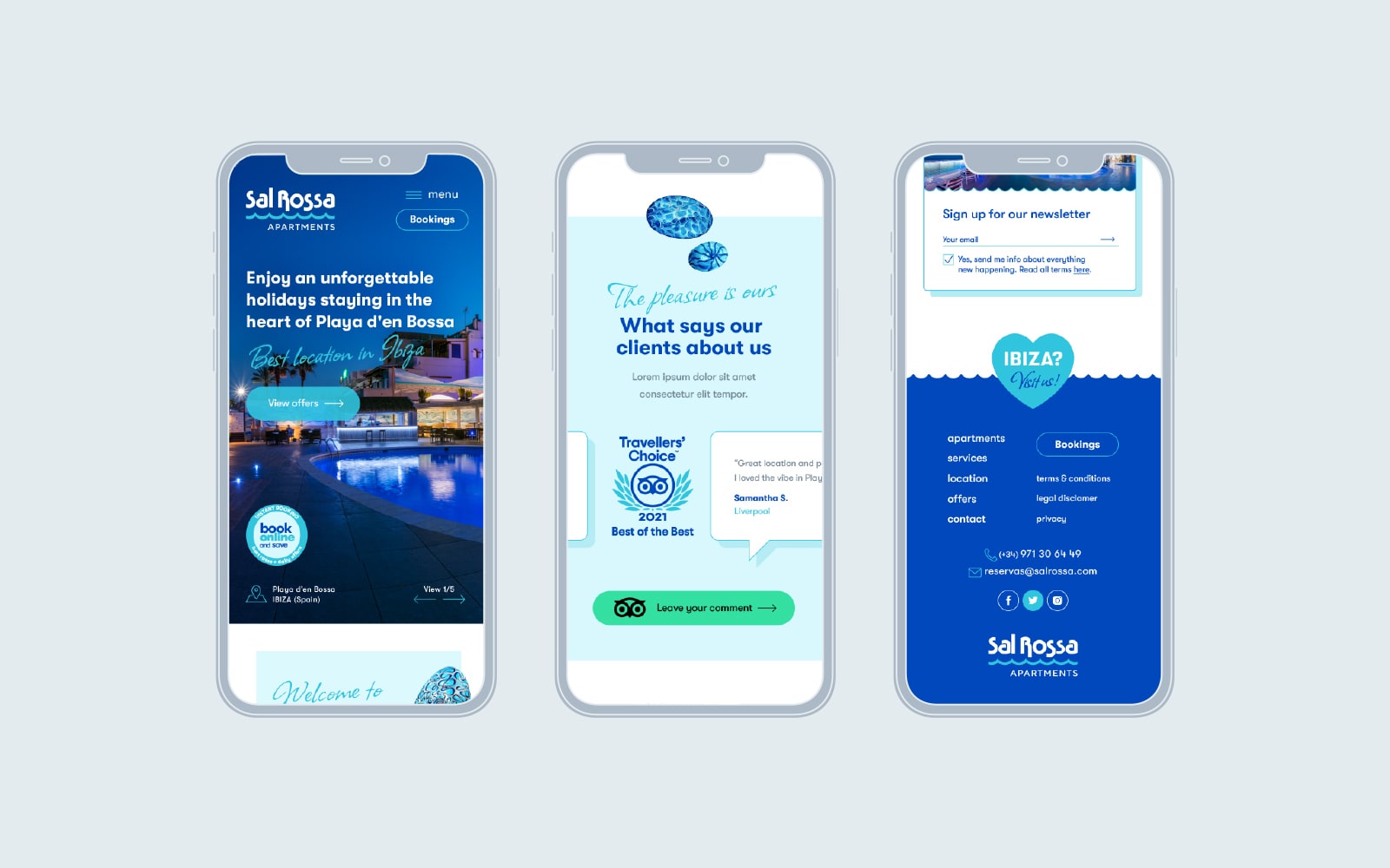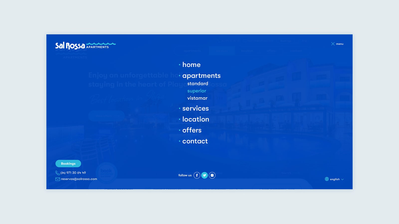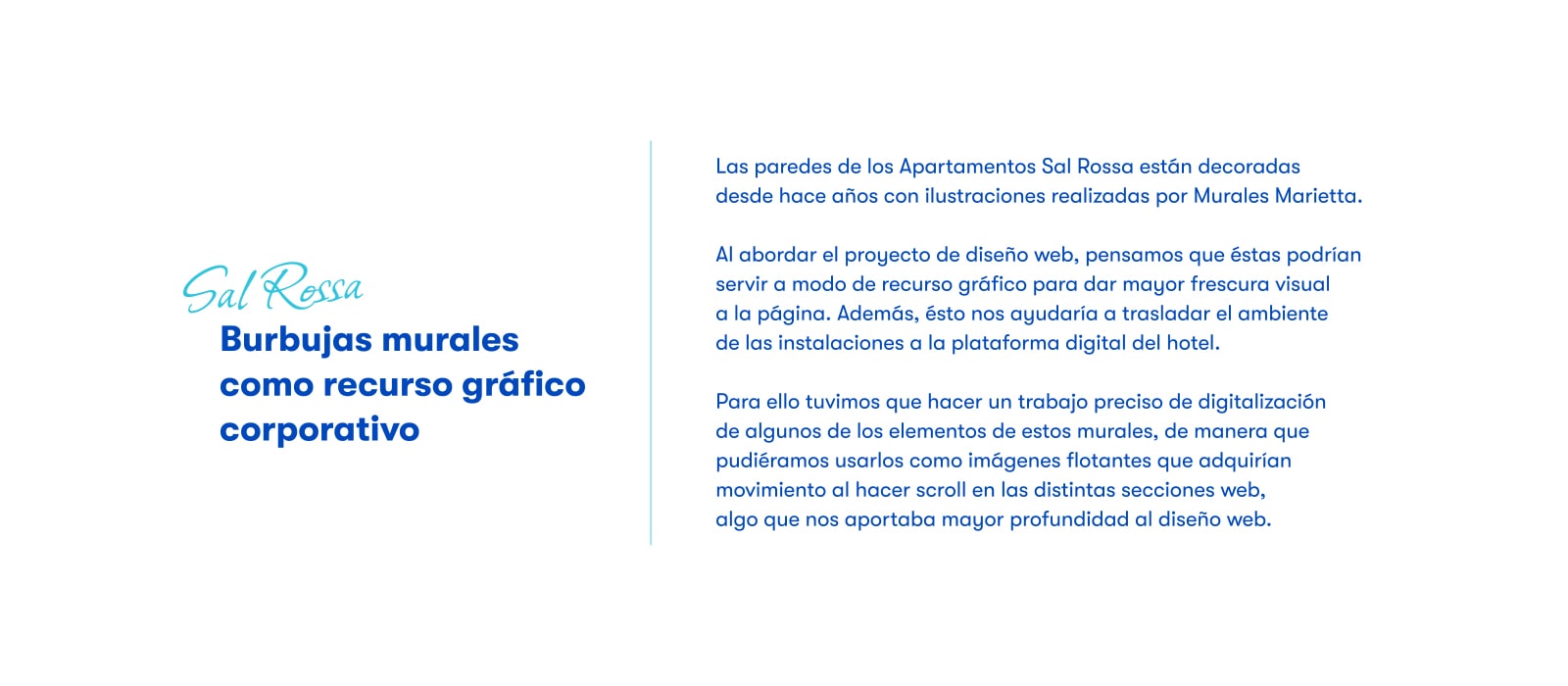 Y eso es lo que hicimos con la web de Sal Rossa Apartments, donde queríamos huir de plantillas preprogramadas y diseños planos. Para ello desarrollamos un diseño web totalmente a medida que además se veía reforzado por un elemento único de la marca.