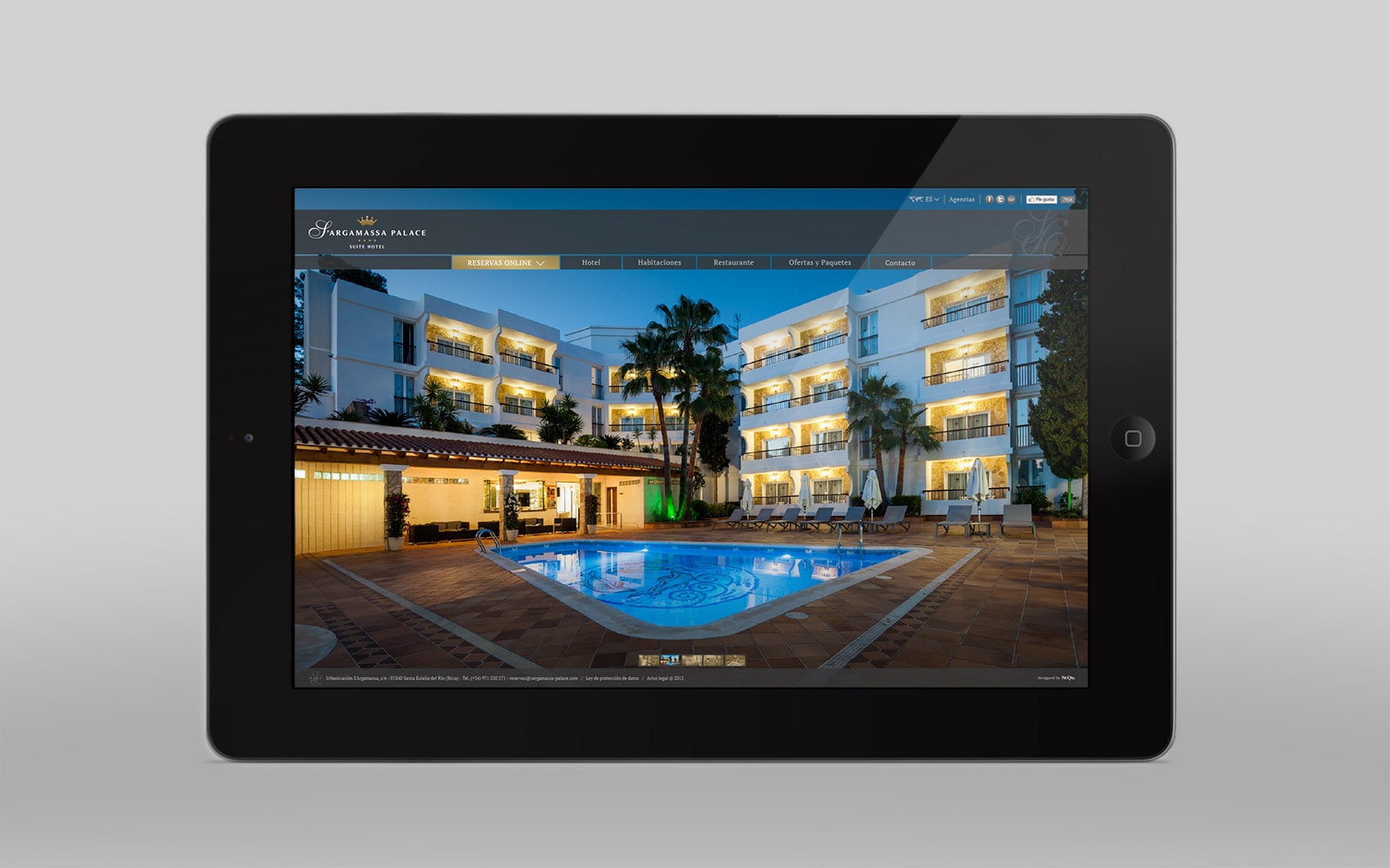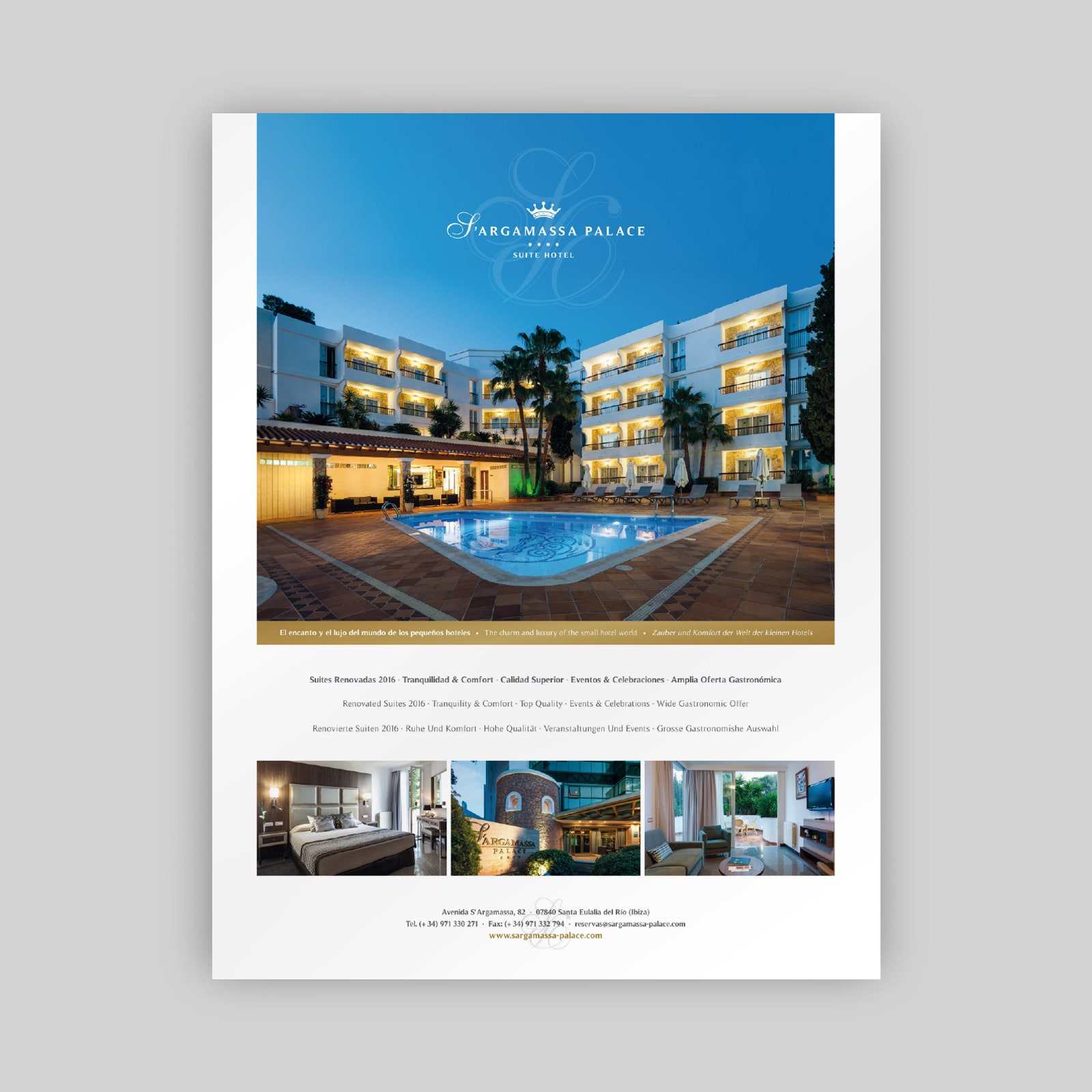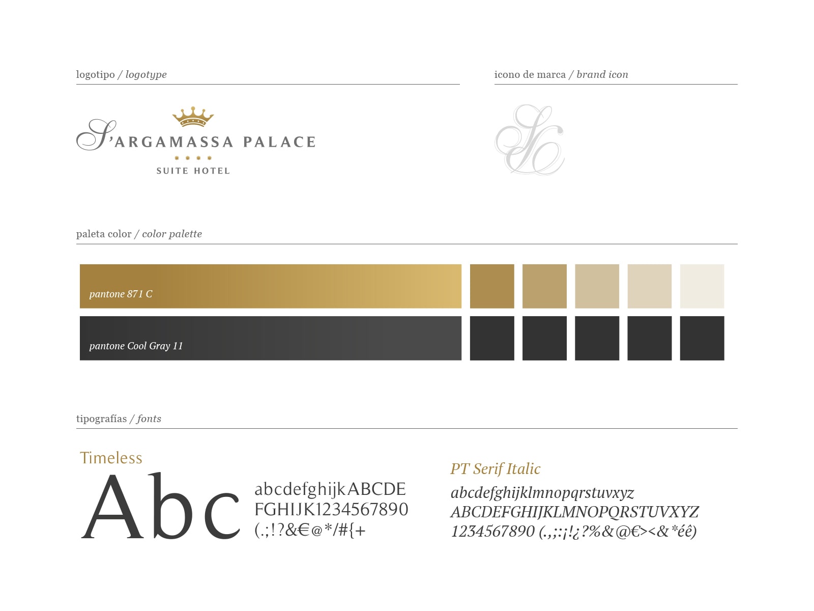 El Hotel S’Argamassa Palace fue uno de los primeros clientes que tuvimos en la isla de Ibiza. En 2011, les planteamos un pequeño restyling de su logotipo, tanto a nivel tipográfico como en el símbolo de su corona.
