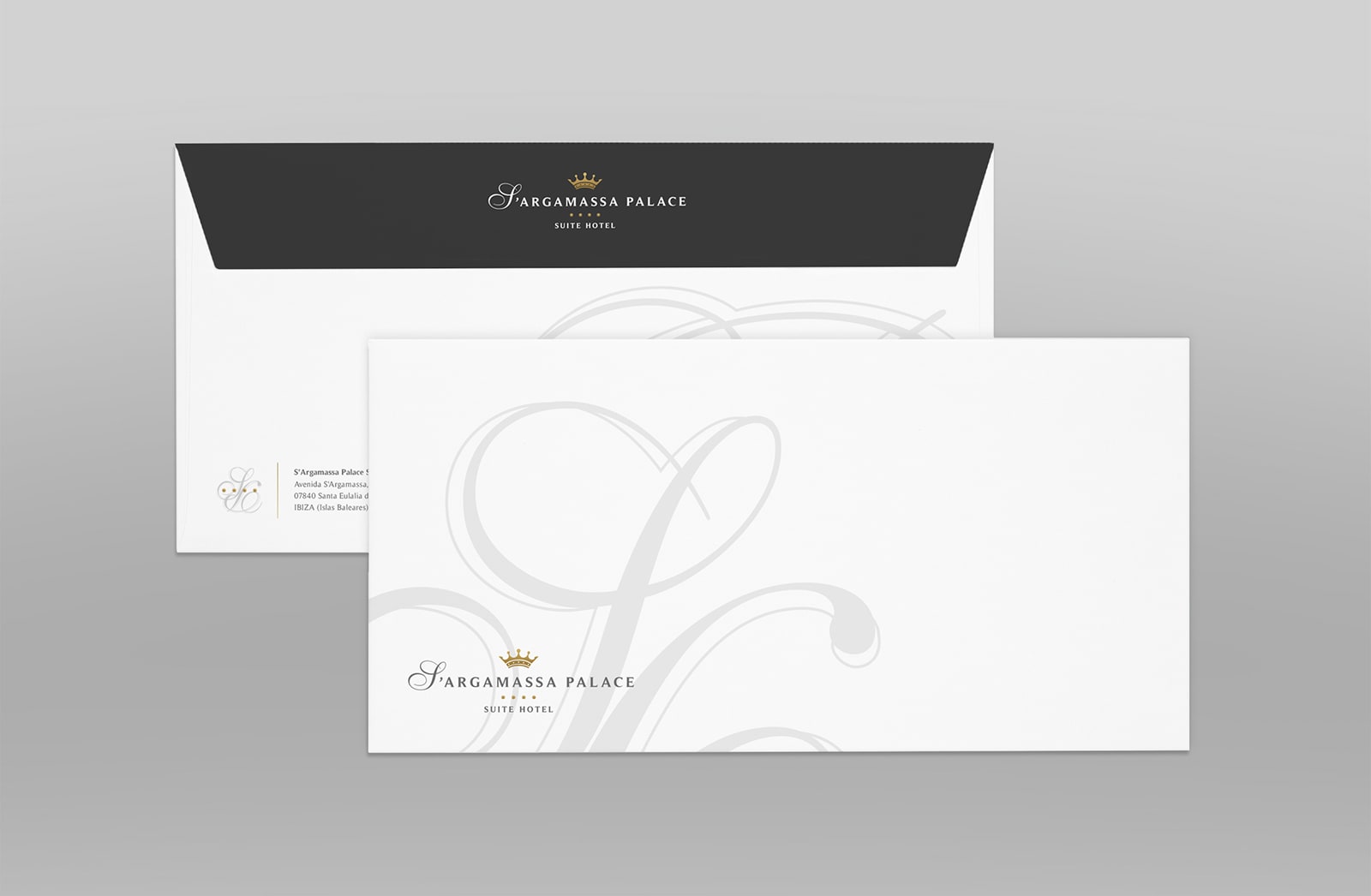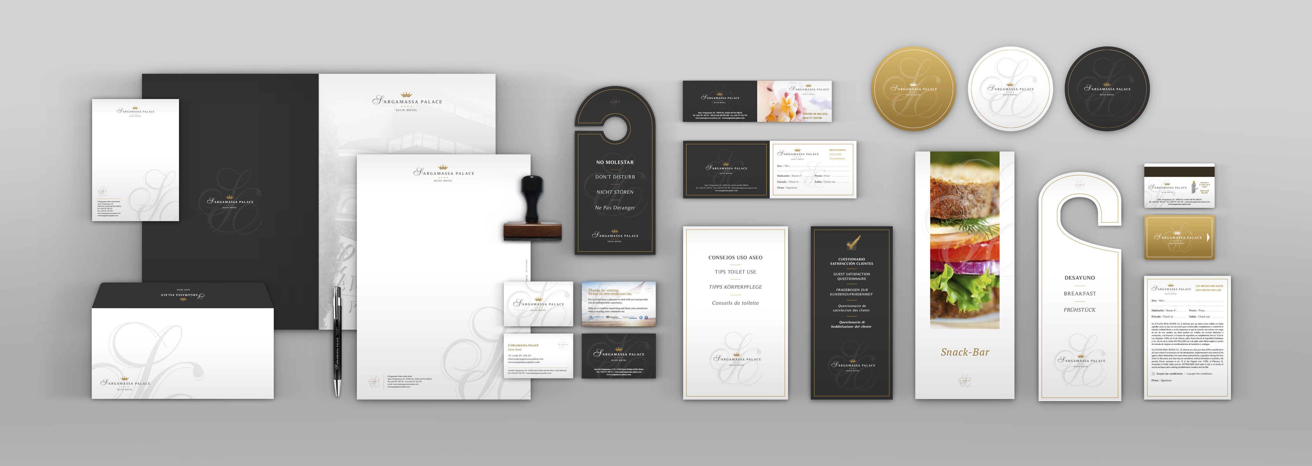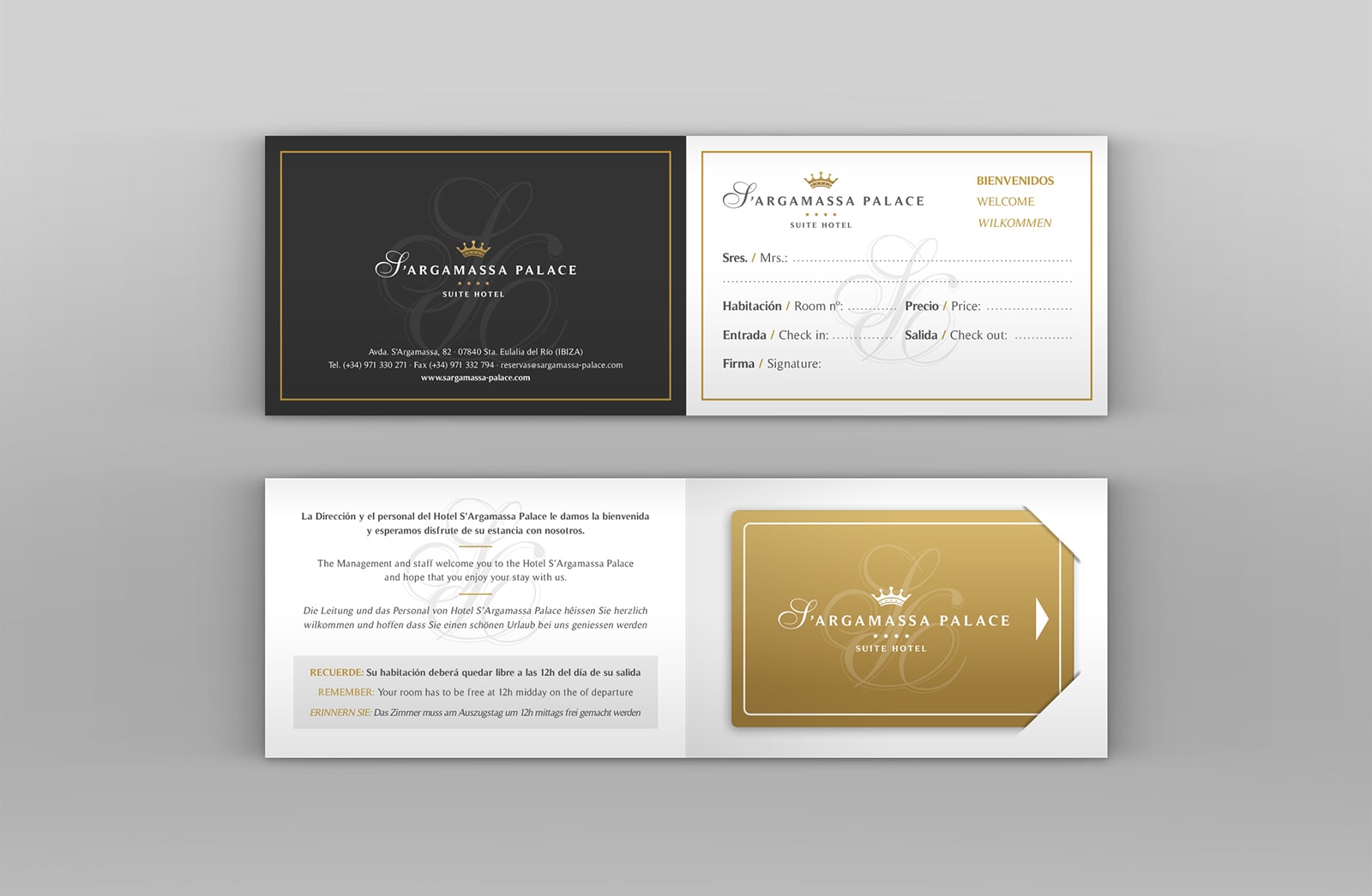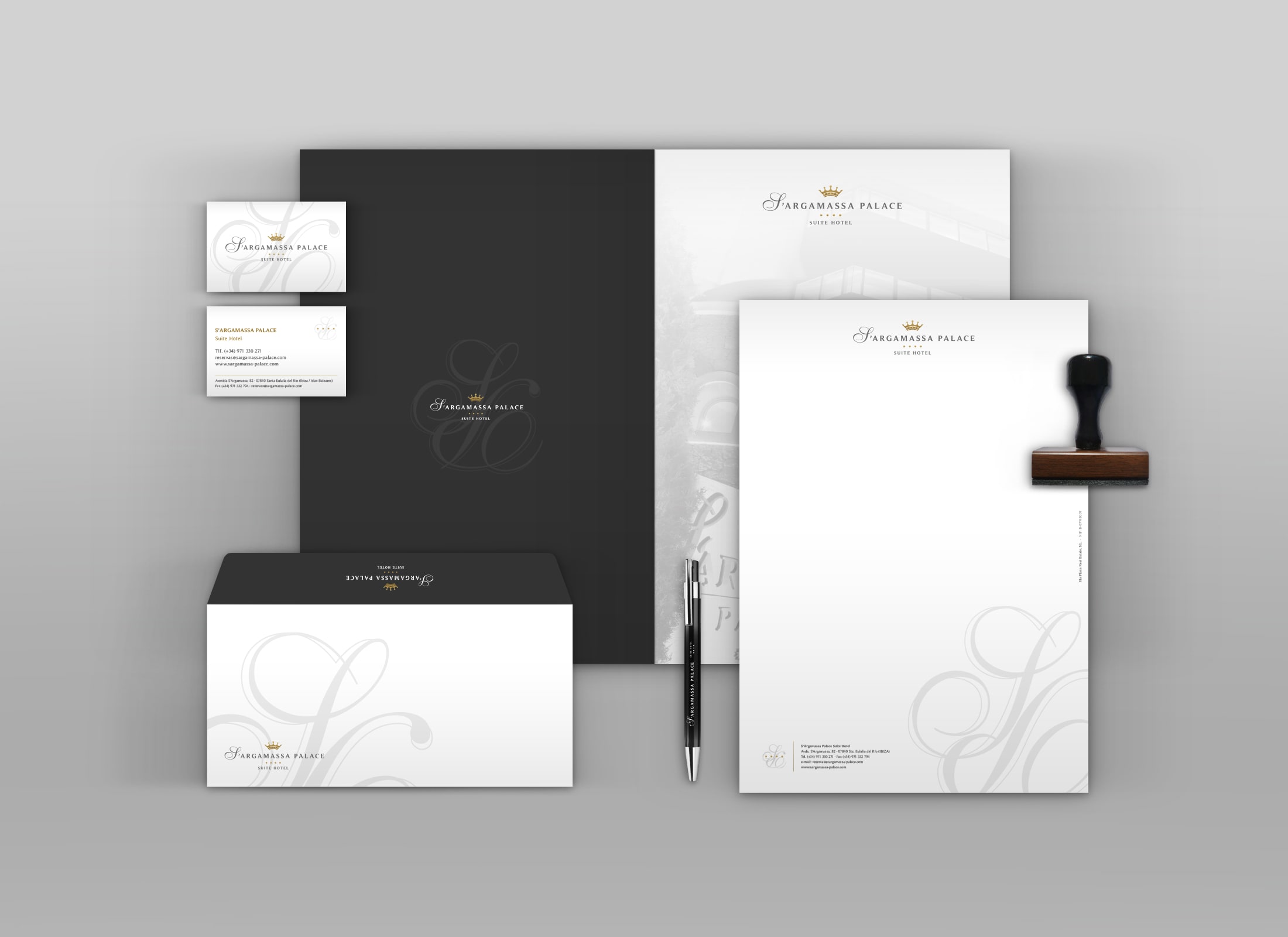 Desarrollo de elementos de papelería corporativa para S’Argamassa Palace, siguiendo un estilo sobrio y elegante, en línea con la esencia del hotel.