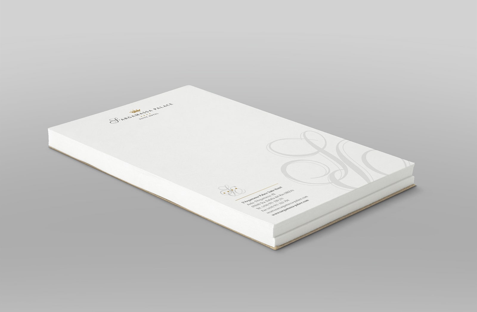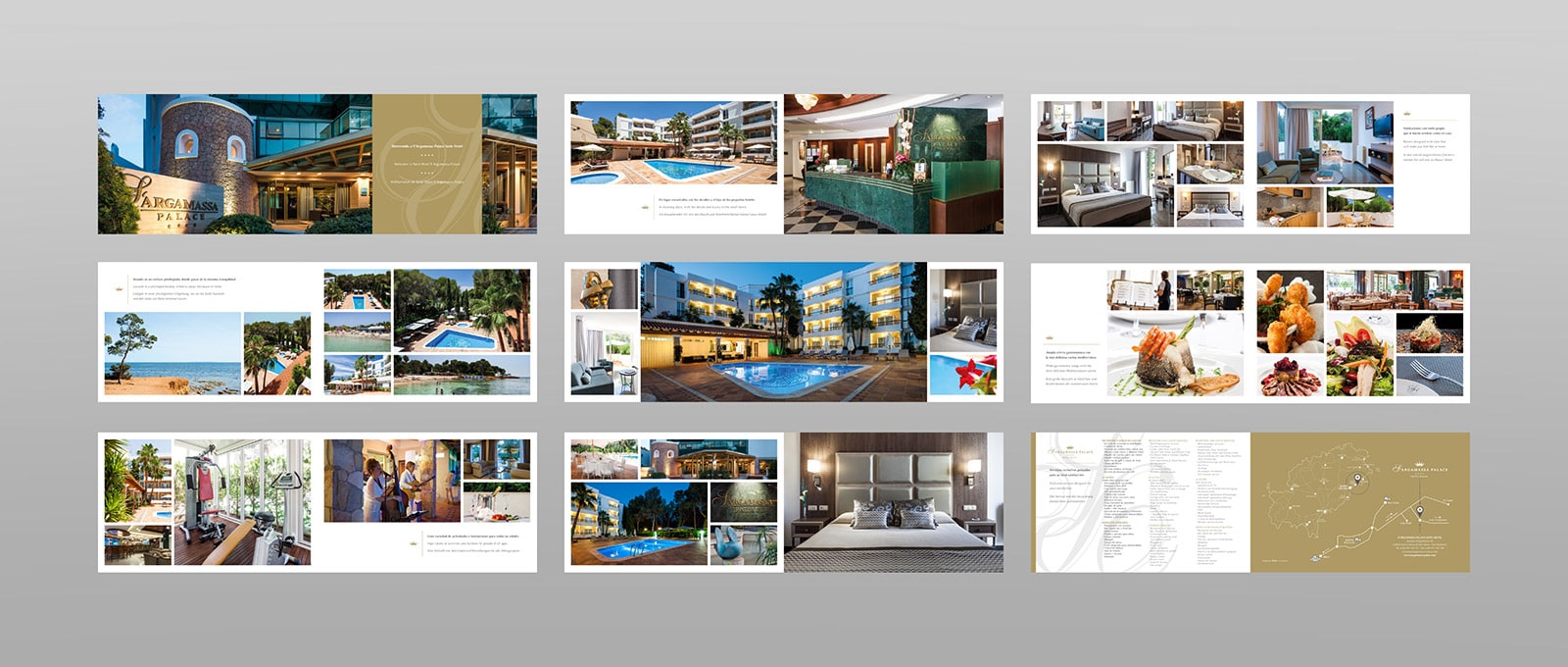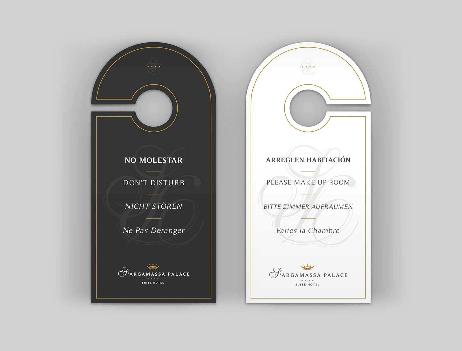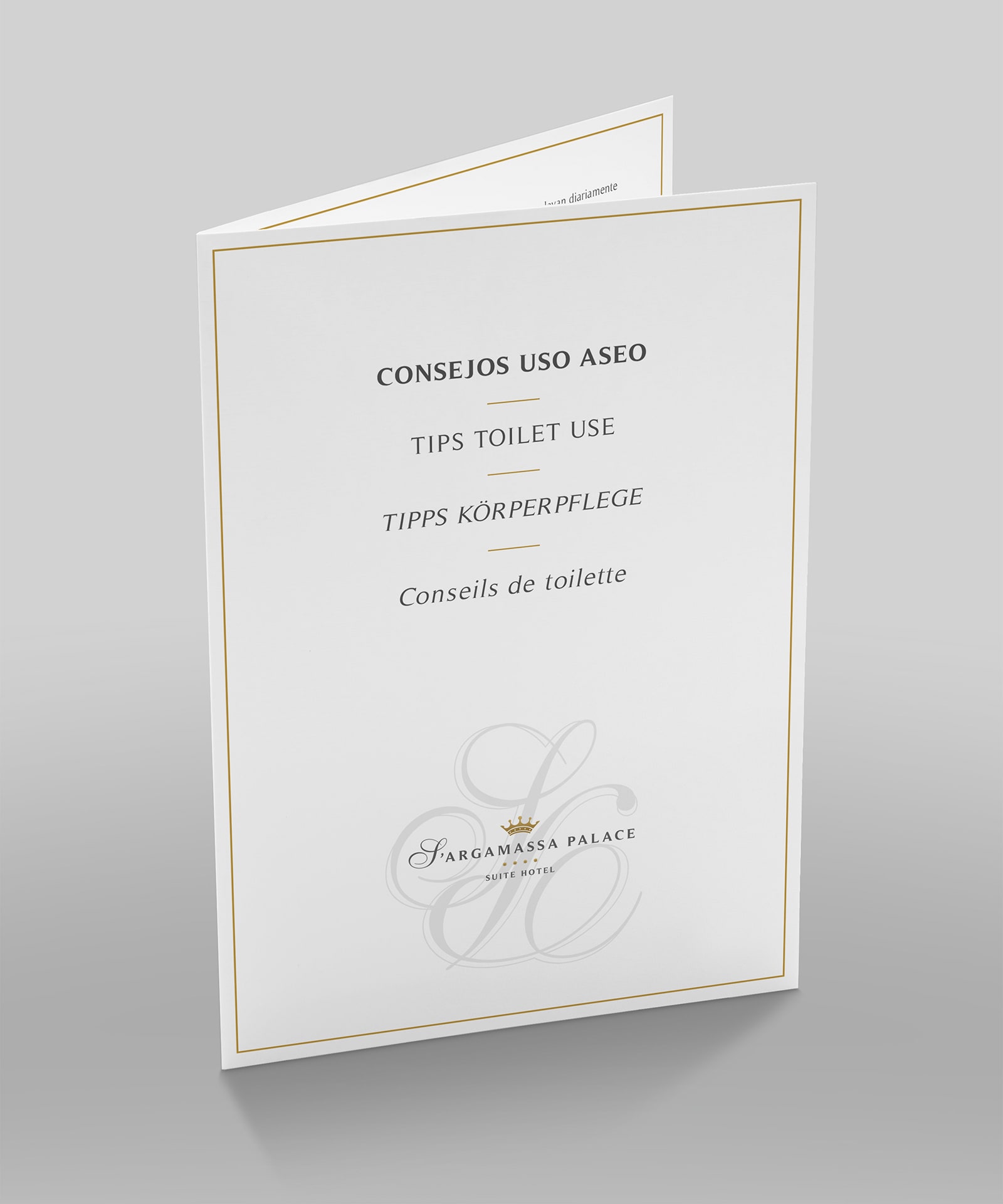 Desarrollo de elementos de papelería corporativa para S’Argamassa Palace, siguiendo un estilo sobrio y elegante, en línea con la esencia del hotel.