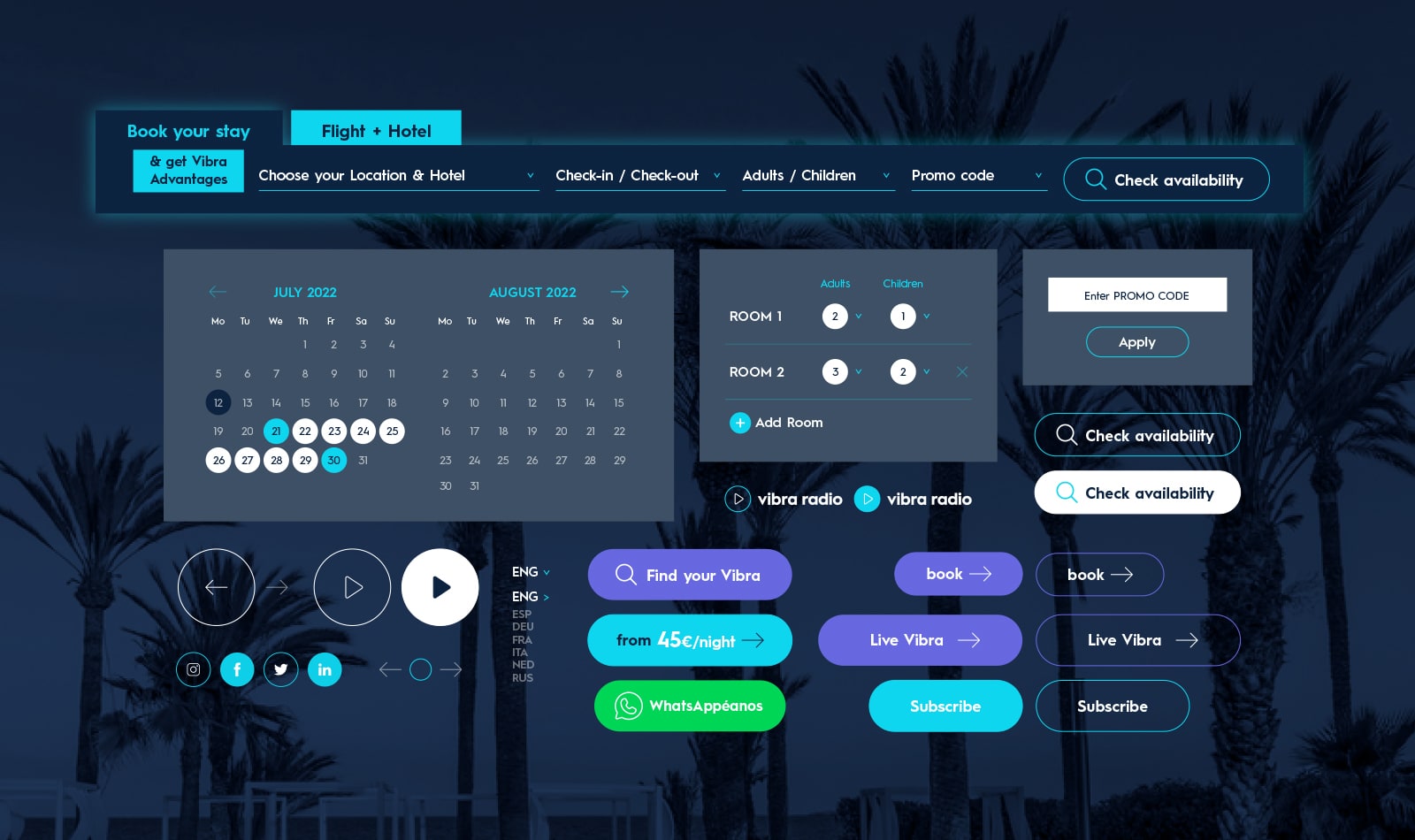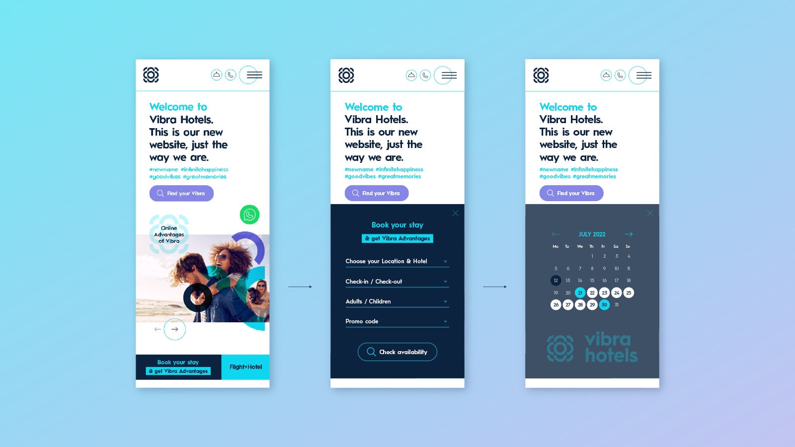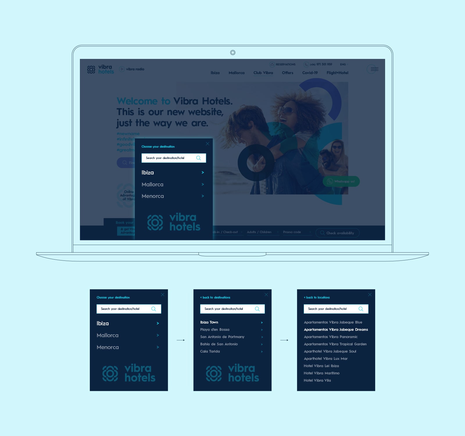 El proyecto tenía un doble reto creativo. Por un lado el de definir el look&feel general de la web siendo fieles a las guidelines de la nueva marca. Y por otro lado, el reto de estructurar de forma ordenada la información de un gran grupo hotelero con casi 40 establecimientos hoteleros repartidos en 3 destinos distintos.